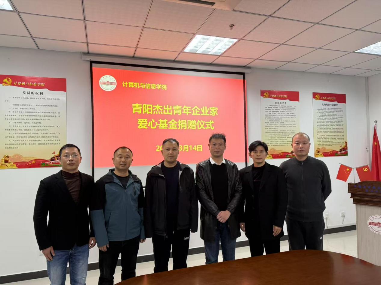 近日,计算机与信息学院在L318举行创新创业校外导师授聘暨捐赠仪式。安徽德润工业设备有限公司、安徽昱程贸易有限公司、安徽呈祥建筑工程有限公司等企业负责人,校教育发展基金会有关同志、计算机与信息学院负责人及辅导员代表等参加仪式。