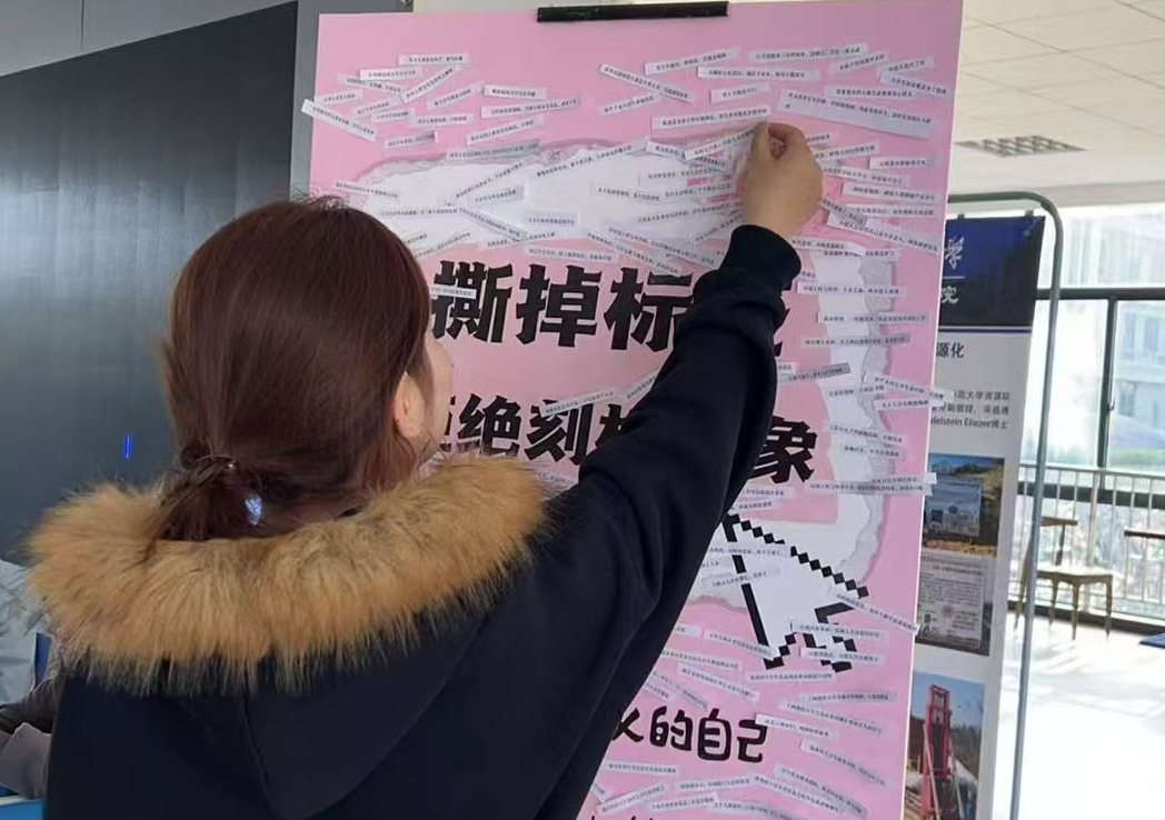 “活动通过具象化的形式,帮助同学们释放心理压力。”活动负责人、旅游管理专业2024级(2)班刘子洁在现场引导同学们交流感受。环境科学与工程专业2024级马晶分享道:“‘女生学不好理工科'的标签并不公平,我会用行动证明自己的能力。”不少参与者提到,撕标签的过程让他们意识到不应被他人片面评价束缚。