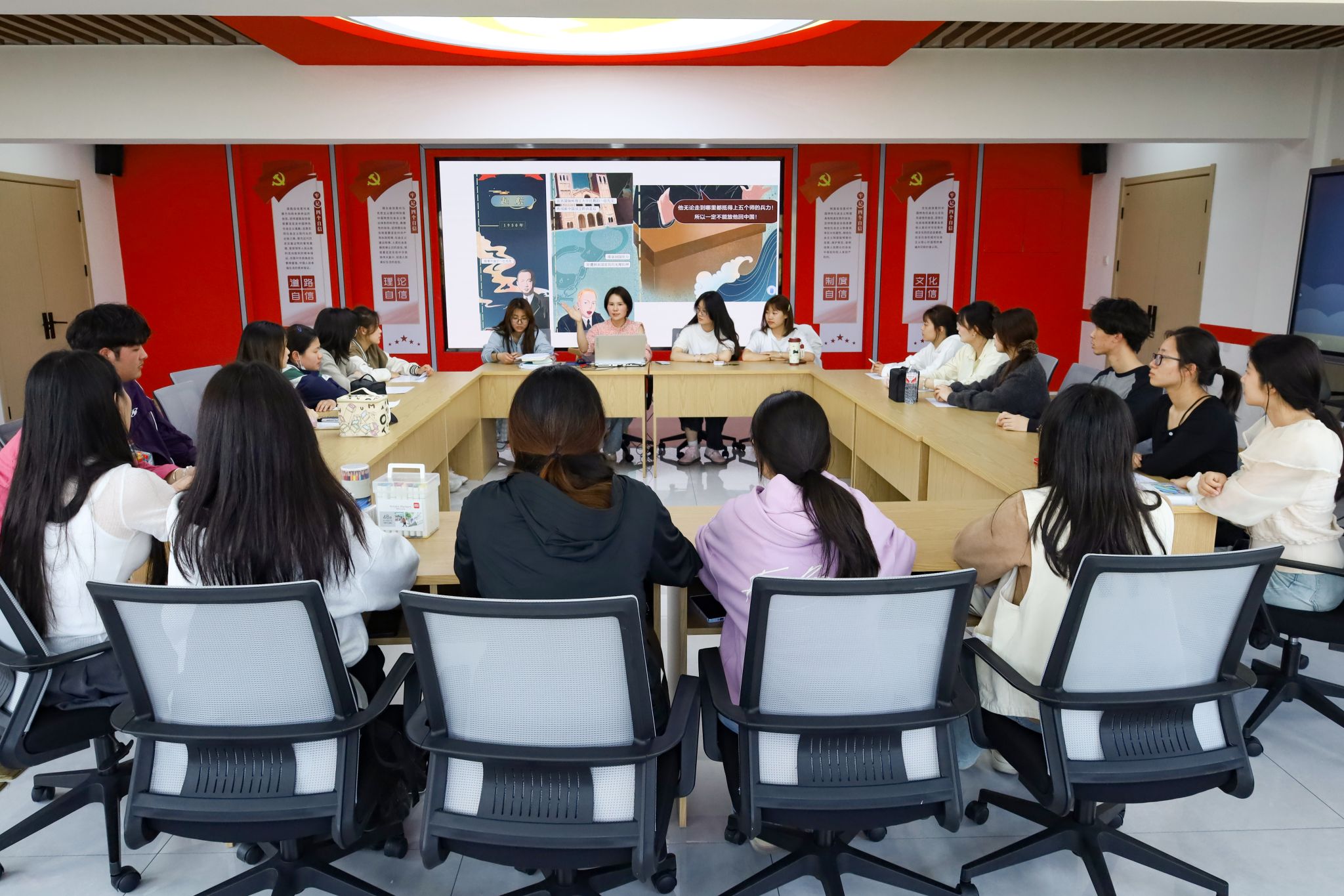 低头是碳条摩擦纸面的沙沙声,抬头是投影屏幕上神舟十八号载人飞船划破天际的烈焰,近20支画笔正在绘制各具特色的航天人形象。3月26日,安徽省党建工作样板支部培育创建单位、美术学院美术学专业学生第一党支部在学生公寓5号楼“一站式”学生社区,以“赓续航天精神,凝聚奋进力量”为主题开展党日活动,通过“漫画学史+沉浸创作”模式,用青春笔触接力中国航天精神的传播。