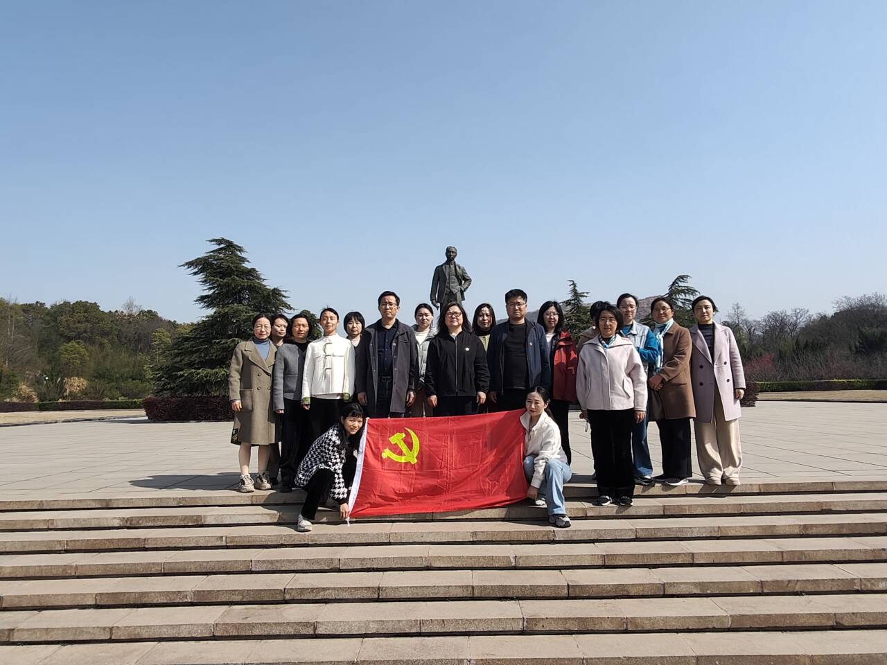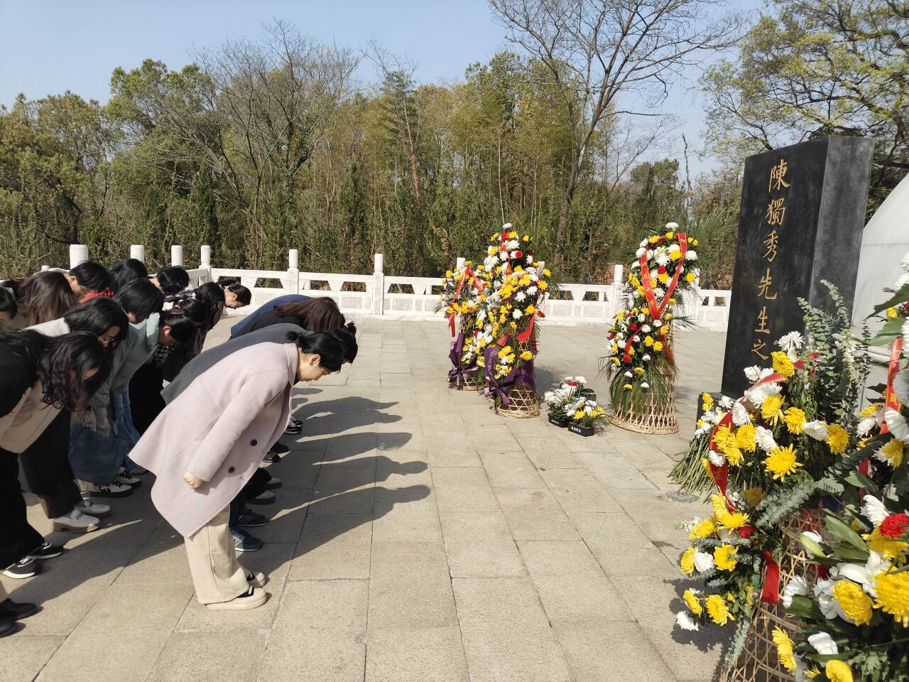 4月2日,图书馆全体党员前往独秀园开展清明祭扫陈独秀墓活动。