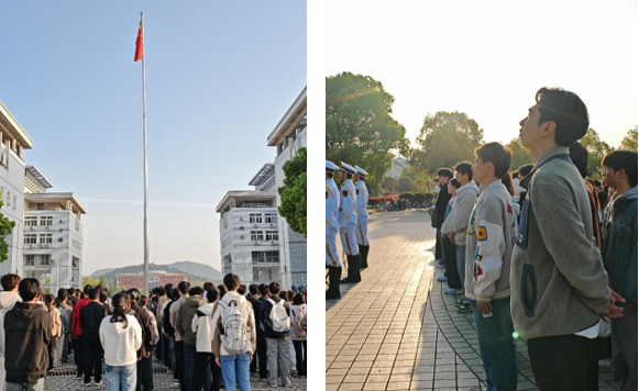 “当国旗升起,爱国之情油然而生。作为新时代大学生,我深感责任重大。未来求学道路中,我们应当秉持勤学笃行、自强不息的态度,将专业知识与国家现实需求紧密结合,在新征程道路上交上一份满意的答卷。”2023级环境科学(1)班的彭欣月说。