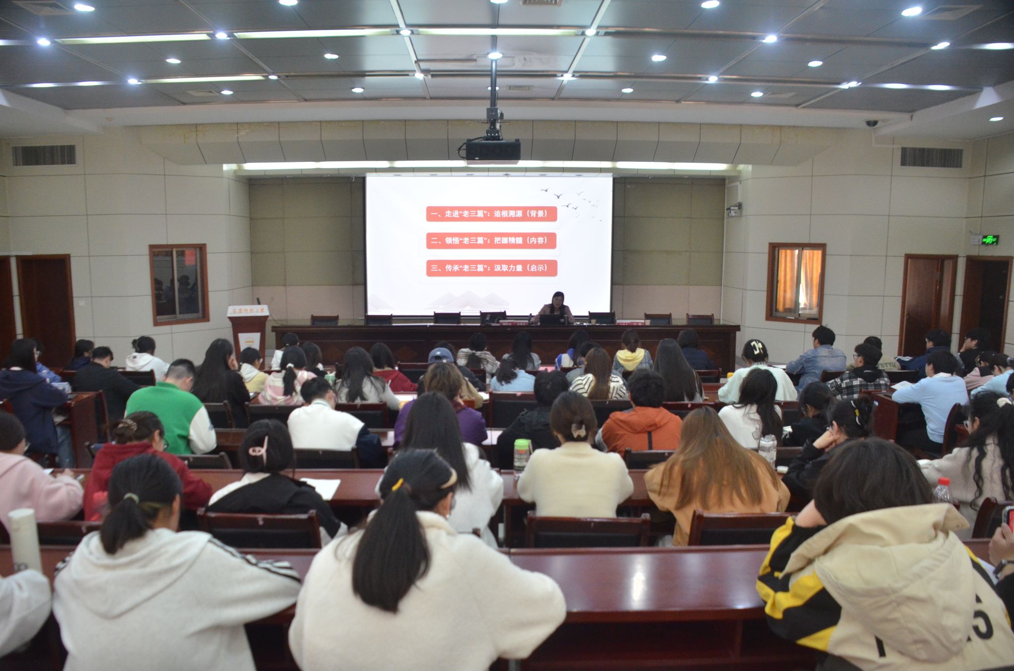 4月2日,校“青马班”在行政楼一楼会议室开展“重温‘老三篇’ 奋进新征程”专题讲座。中共安庆市委党校党史党建教研室副主任郑肖辰应邀作专题报告。讲座由校团委副书记方蓬主持,校“青马班”学员、校级组织学生骨干100余人参加讲座。
