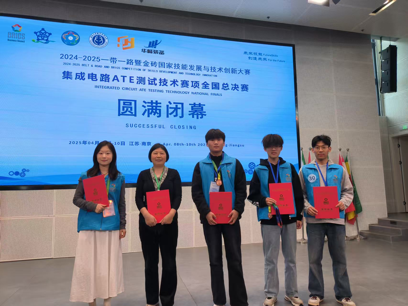 4月8日至10日,2024-2025“一带一路”暨金砖国家技能发展与技术创新大赛(集成电路ATE测试技术赛项)全国总决赛在南京工业职业技术大学举行。该项比赛共吸引了来自全国14个省以及直辖市的选手同台竞技。纽约国际官网电子工程与智能制造学院詹文法、郑江云和蔡雪原三位教师指导的两支队伍(团队成员:杨晨露、蒋书航;戚盛源、李荣耀)分别取得了二等奖、三等奖的好成绩,学校获得优秀组织奖单位荣誉称号。