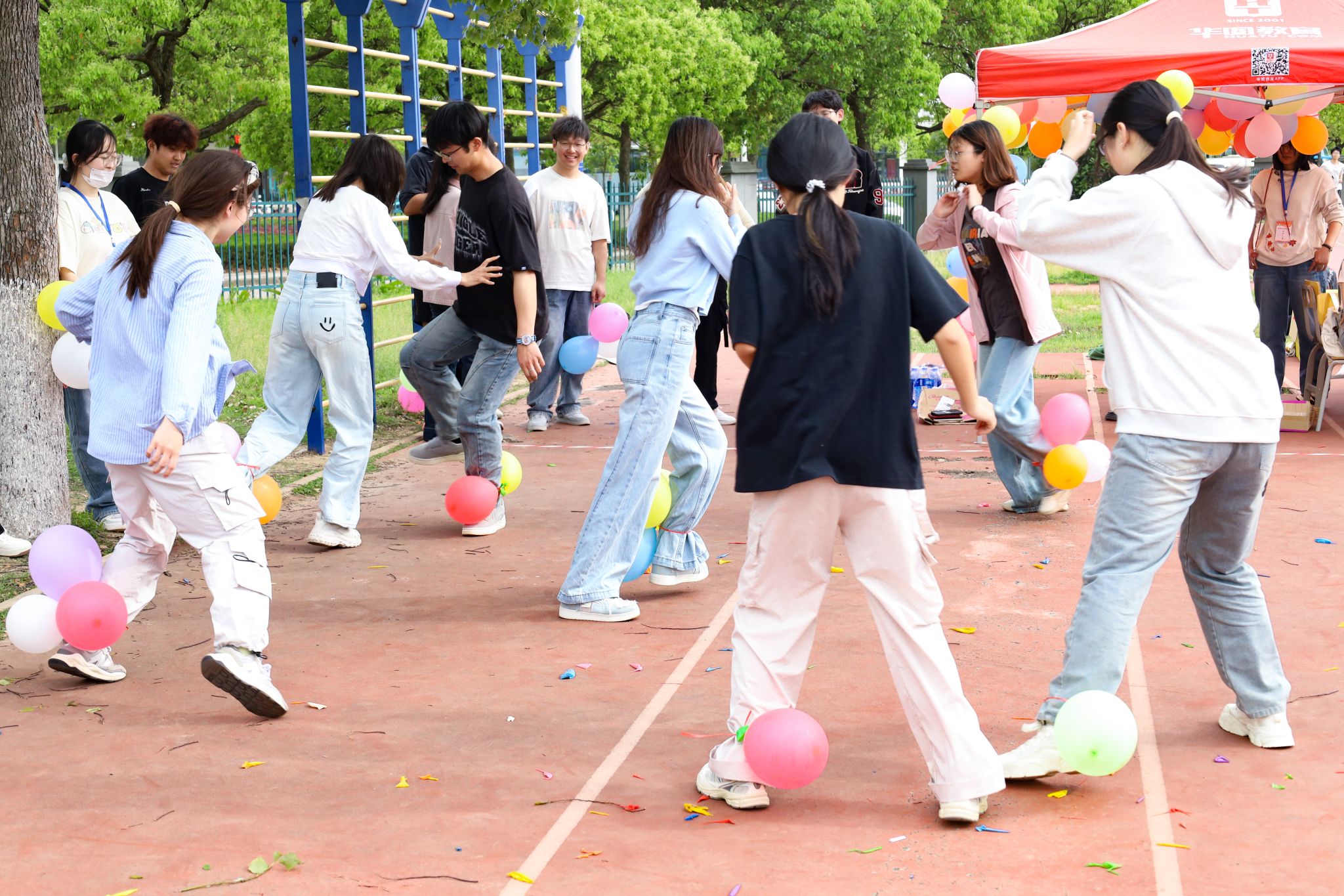 “跳快点,抓紧袋子!”“踩他,小心后面偷袭!”“围住他,注意防守!”……4月16日,教育科学学院在东门操场举办第四届趣味运动会——趣“袋”逐风,“踩”响活力冲锋赛。活动设置了袋鼠接力跳与踩气球两个比赛项目,吸引了近百名本科生与研究生积极参与。