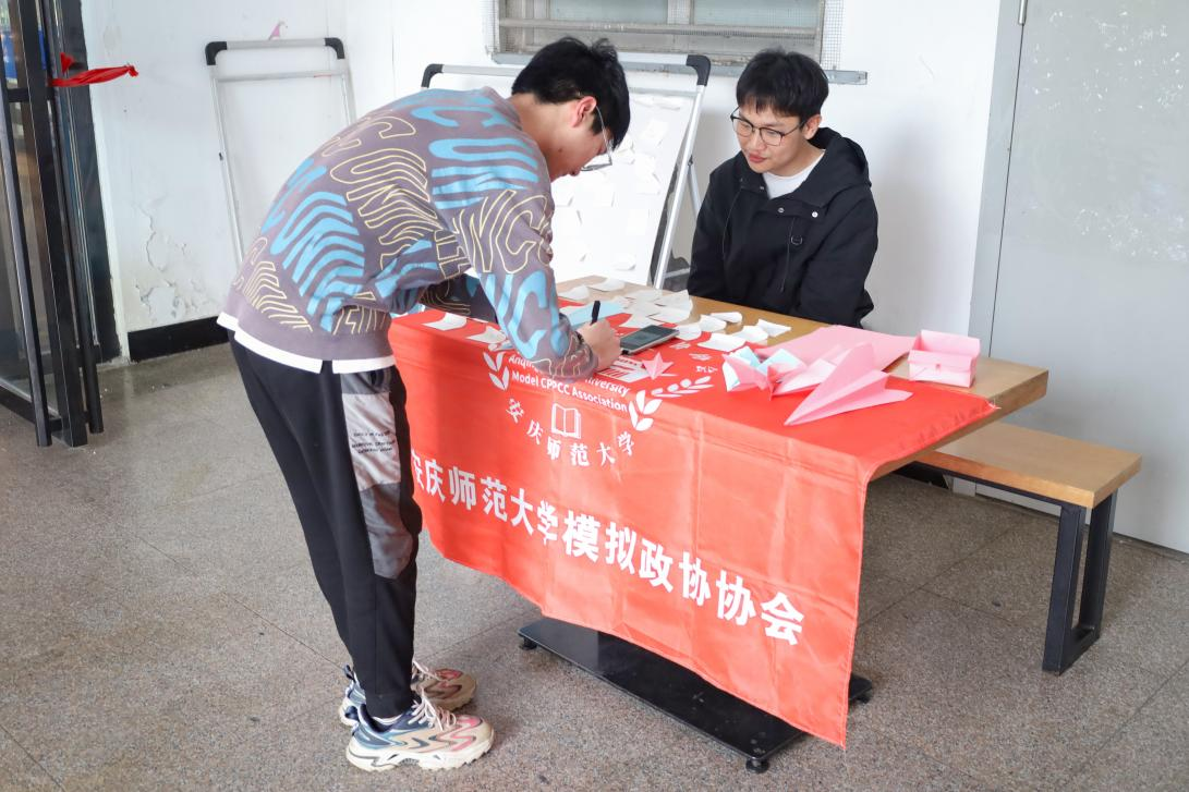 “请大家举起手中的纸飞机,三、二、一,放飞!”五十余架写着“女生不擅长理科”“农村学生见识少”等刻板标签的纸飞机,裹挟着陈旧的观念,从参与者手中腾空而起,划破长空飞向“远方”。4月16日,由大学生模拟政协协会举办的“‘撕下标签,破茧重生’——去标签化”主题活动在文渊楼201教室内拉开序幕,吸引了200余名学生的参与。