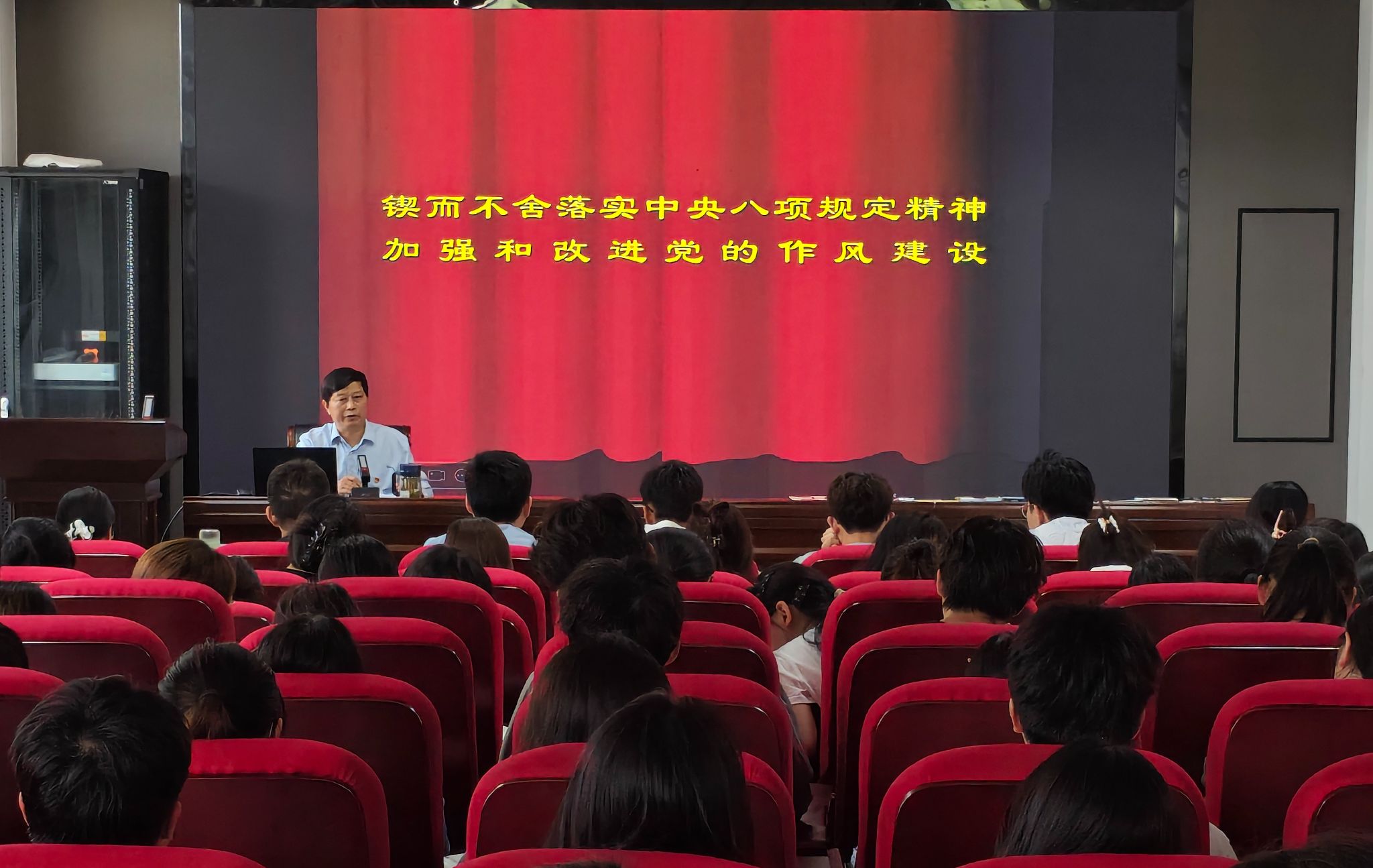 5月14日,化学化工学院举办深入贯彻中央八项规定精神学习教育专题党课。党课由化学化工学院党委书记李新建主讲,化学化工学院第 71 期入党积极分子培训班学员和化学专业学生第一党支部党员参加学习。