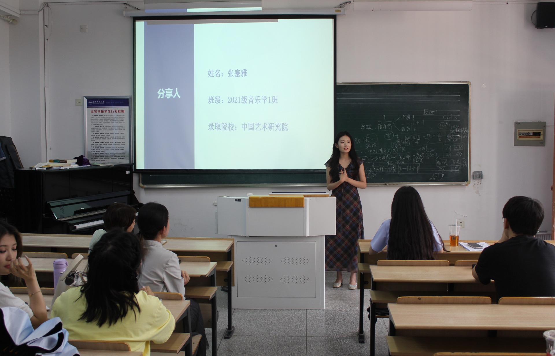 5月14日,音乐学院在艺术楼B206教室举办考研经验交流会。2021级音乐学专业张塞雅、舞蹈表演专业李安琪等8位优秀学子受邀分享考研心得。