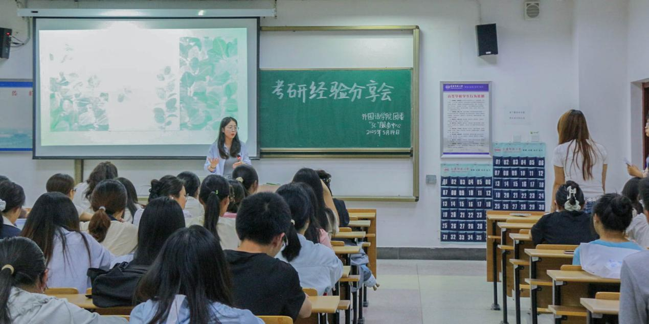 近日,外国语学院于E106举办考研经验分享交流会。5位2021级考研上岸的学生代表受邀开展经验分享,近两百名学生参加会议。