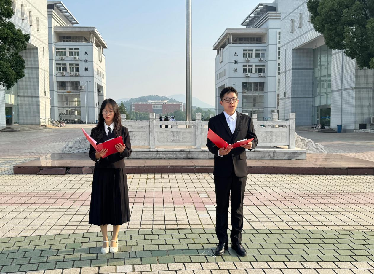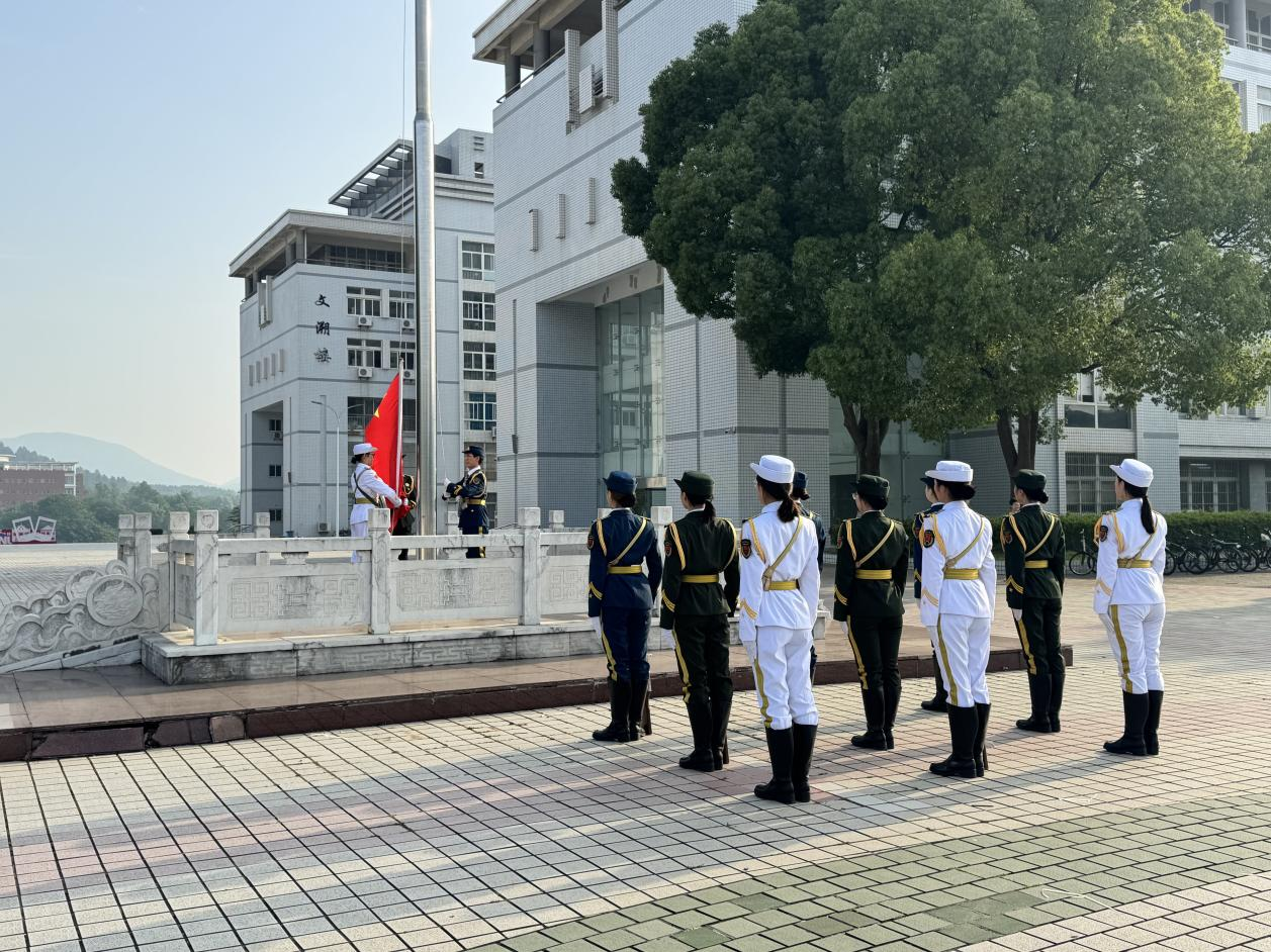5月19日,马克思主义学院在敬敷广场前举行升旗仪式。2024级全体新生、各年级学生代表240余人参加活动。