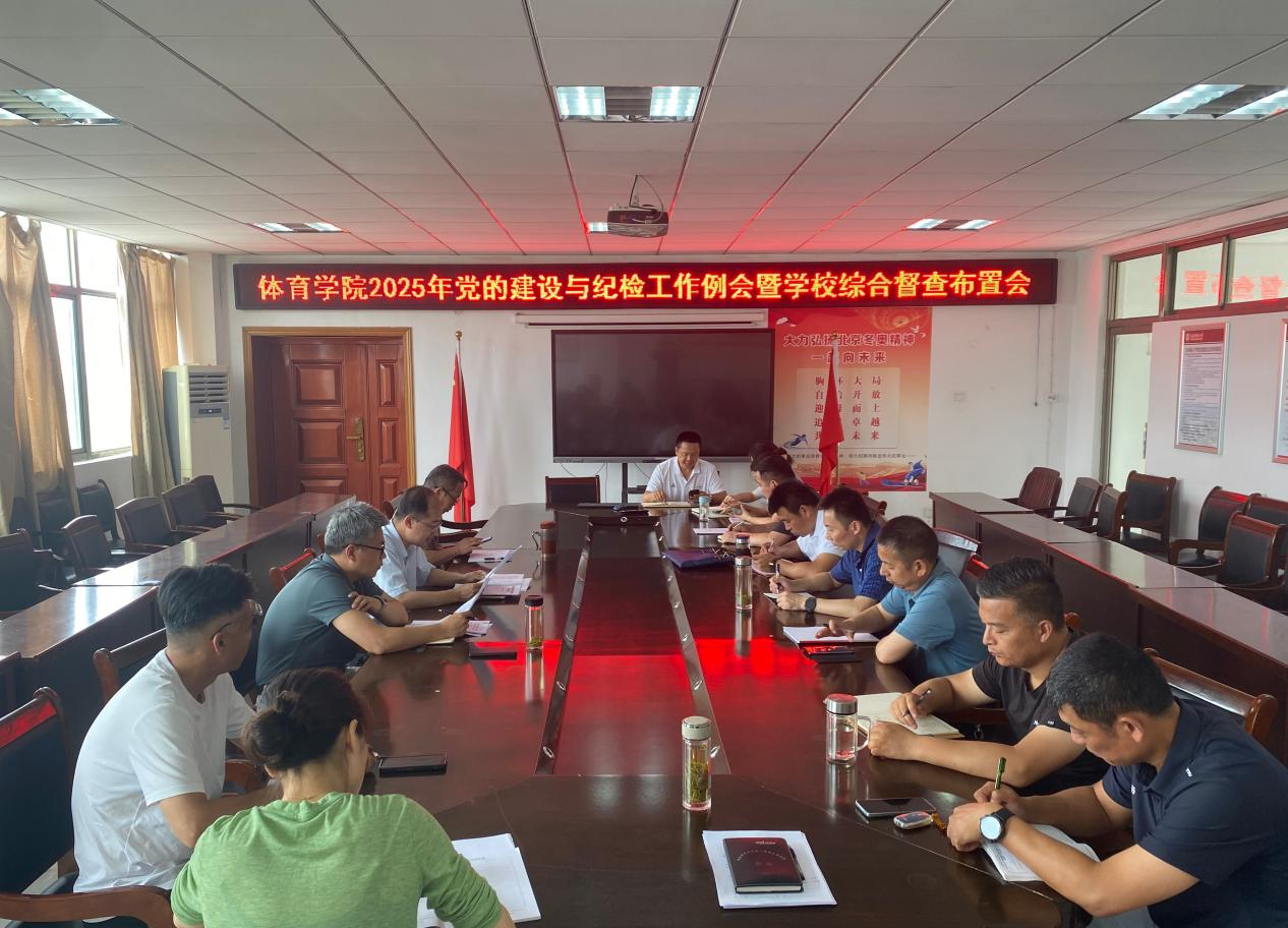 会议传达了学校近期召开的深入贯彻中央八项规定精神学习教育学查改一体推进大会暨党务工作例会精神,学习了《八项规定改变中国》、习近平总书记考察河南重要讲话精神,传达、布置了学习教育等有关工作,并就体育学院近期党的建设、纪检监察重点任务和学校综合督查工作进行安排布置。