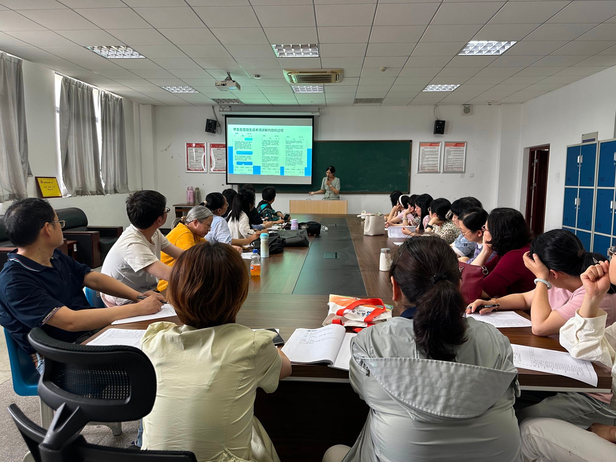 与会教师对吴娟的创新实践均给予高度评价。“吴娟分享的课堂实践活动具有创新性和启发性。”“利用AI生成歌曲非常有创意,能激发学生的学习兴趣。”张文指出,吴娟分享的教学案例为AI+教育提供了可复制的范式。在研讨环节,与会教师就“如何平衡AI辅助与传统教学”展开热烈讨论,达成 “技术为教学服务” 的共识,强调在运用AI技术时,需坚守育人本质。