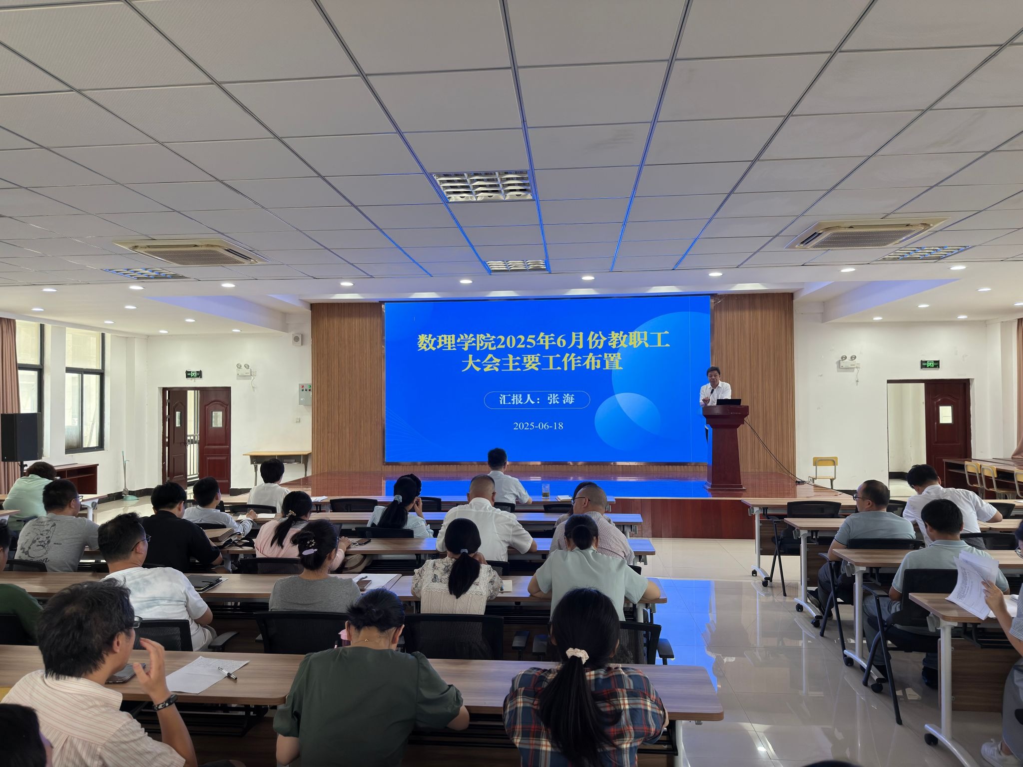 6月18日,数理学院在I楼401报告厅召开全体教职工大会,推进深入贯彻中央八项规定精神学习教育并布置期末阶段工作。数理学院党委书记陆健,院长张海,党委副书记、纪委书记彭芳珍以及全体教职工参加会议。会议由陆健主持。