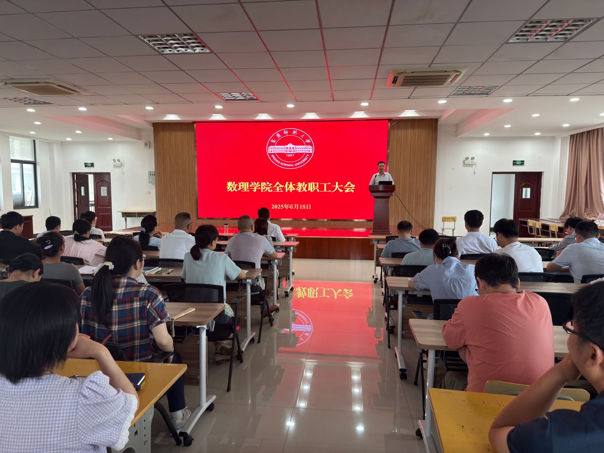 会上,全体教职工重温了习近平总书记三次考察安徽重要讲话精神,学习了习近平总书记发表在《求是》杂志上重要文章《加快建设教育强国》,陆健传达了省委常委会关于整治违规吃喝相关会议精神,总结了数理学院近期深入贯彻中央八项规定精神学习教育开展情况,分析学院近期面临的形势和发展机遇。张海从党建、师资队伍、学科科研、本科教学、研究生教育、社会服务、团学工作等七个方面布置了期末阶段主要工作。彭芳珍通报了高校系统违反中央八项规定精神典型案例。
