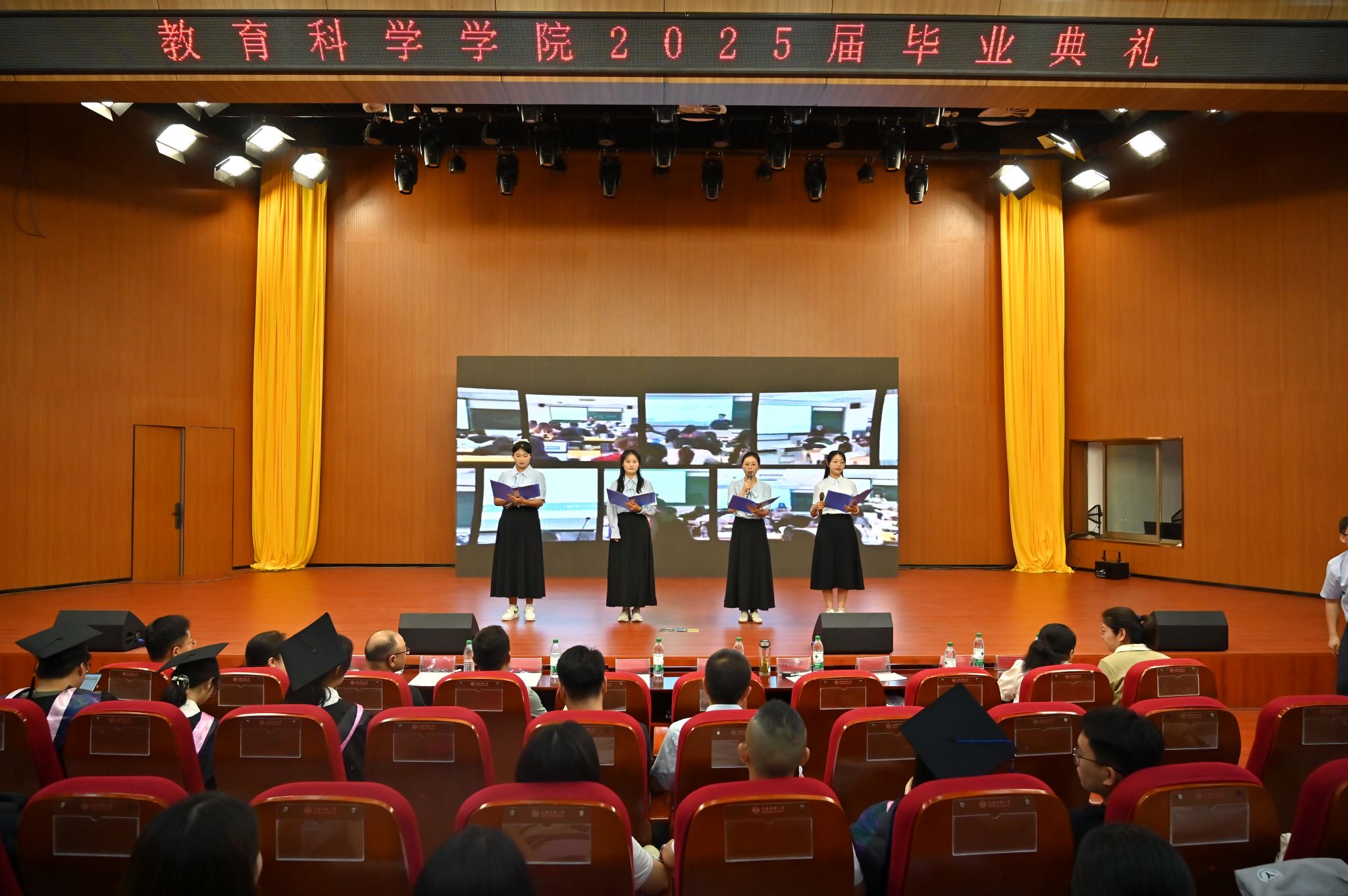 6月20日,教育科学学院在校图书馆东报告厅举办2025届毕业典礼。教育科学学院党委书记何孔蛟、院长吴云助、党委副书记许世平、副院长王皓宇、硕士毕业生导师、毕业班全体辅导员出席典礼,与本科及硕士毕业生代表齐聚一堂,共赴这场青春的告别盛宴。