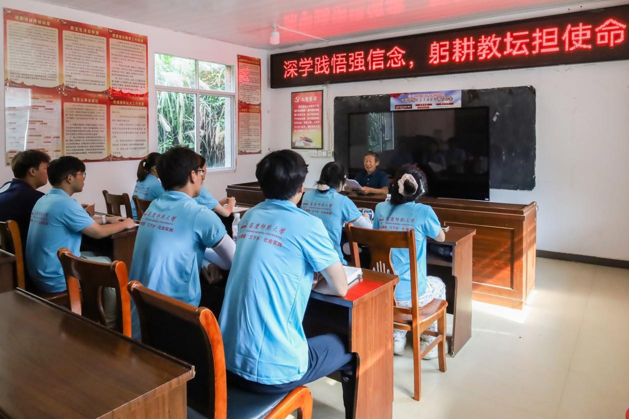 老校长朱中明回忆初到西冲村任教时,学校条件艰苦,以几间破旧瓦房作为教室,是孩子们渴望知识的眼神,让他下定决心扎根于此。他从西冲村教育起点开始,分别从新中国成立前、土地改革、区域解放三个时间节点讲起,阐述了西冲村教育变化。“最开始学生连教学用具也凑不齐,先生要挨家挨户找学生读书,随着时代的变化,孩子们获得更多受教育的机会,大家从盼着孩子‘有学上’,到希望孩子‘上好学’。”朱中明的话让实践团队感受到乡村教育发展变化的脉络。