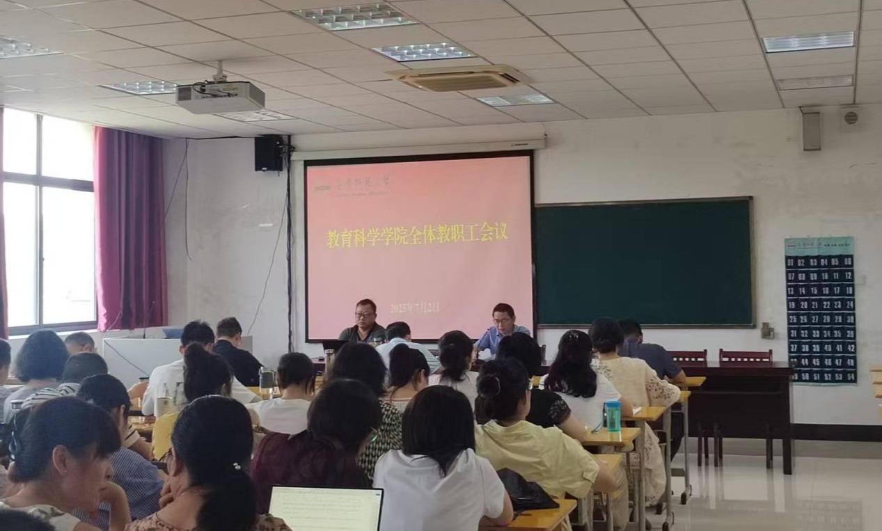 7月2日,教育科学学院召开全体教职工大会,安排布置暑期重点工作。会议由教育科学学院党委书记何孔蛟主持。