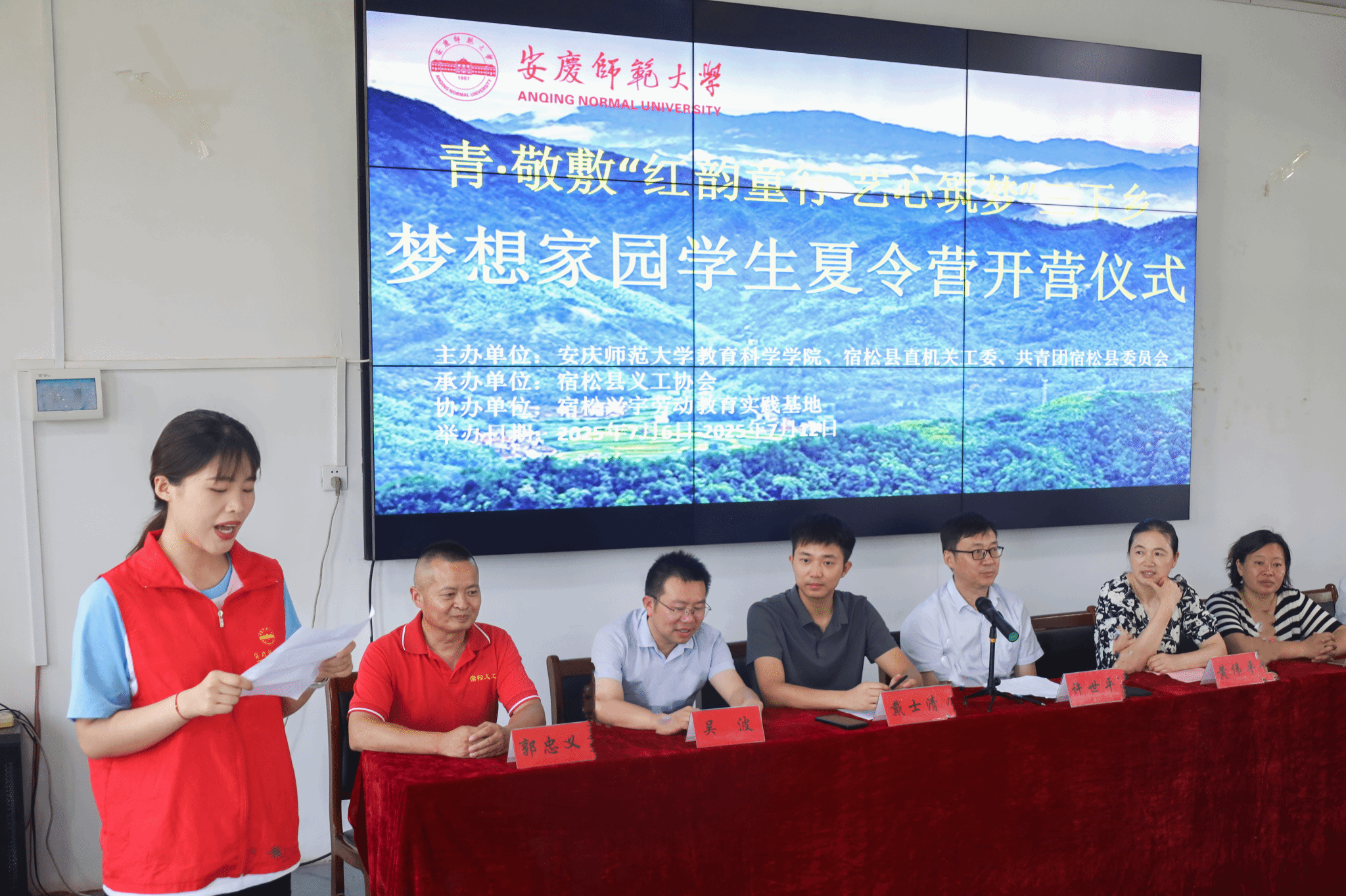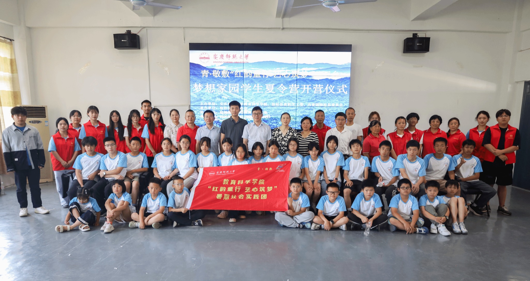 本次“红韵童行,艺心筑梦”暑期社会实践活动由教育科学学院携手宿松团县委、宿松义工协会联合主办。开营仪式为活动的顺利开展奠定了良好基础。未来的一周时间里,实践团队将以艺术点燃梦想,以心灵沟通为助力,开展多样化课程教学和实践,让家国情怀在艺术与智慧的浇灌下薪火相传,让青春在火热的社会实践中绽放时代光彩。(撰稿:汪巧    摄影:祖毅    编辑:江伟    审核:许世平 赵丽丽)