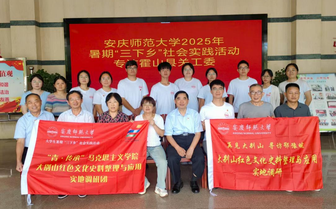2025年7月21日至25日,“青·传承”马克思主义学院“大别山红色文化史料整理与应用”暑期社会实践团在指导老师俞鹏、徐晓莉的带领下,赴安徽省金寨县、霍山县开展以“大别山红色文化史料整理与应用研究”为主题的实地调研。