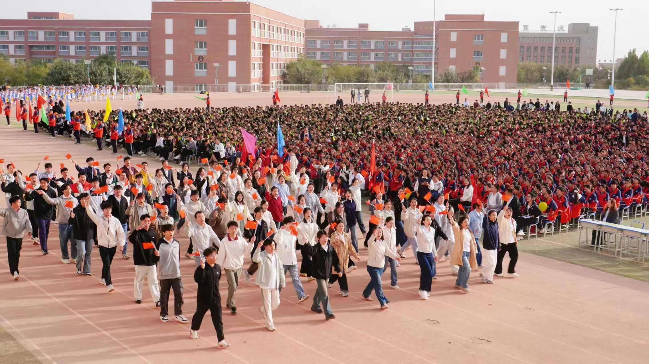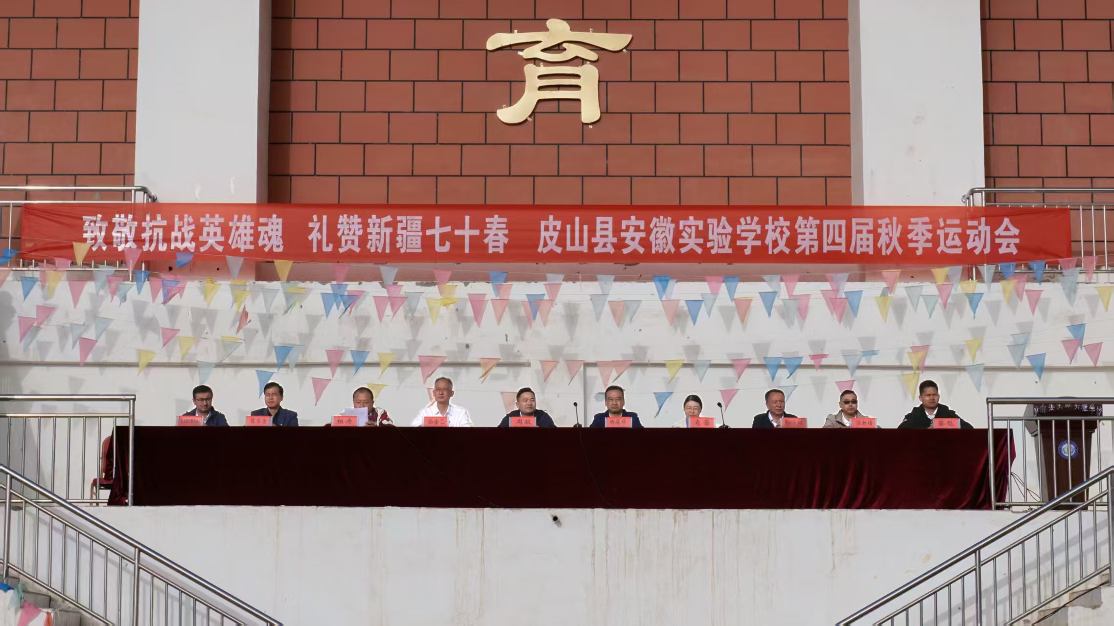 9月27日,皮山县安徽实验学校运动场上彩旗飘扬。在庄严的国歌声中,以“致敬抗战英雄魂 礼赞新疆七十春”为主题的第四届皮山县安徽实验学校秋季运动会正式拉开帷幕。纽约国际官网第二批援疆支教志愿服务队全体队员与皮山县安徽实验学校全校师生共同参加运动会开幕式。