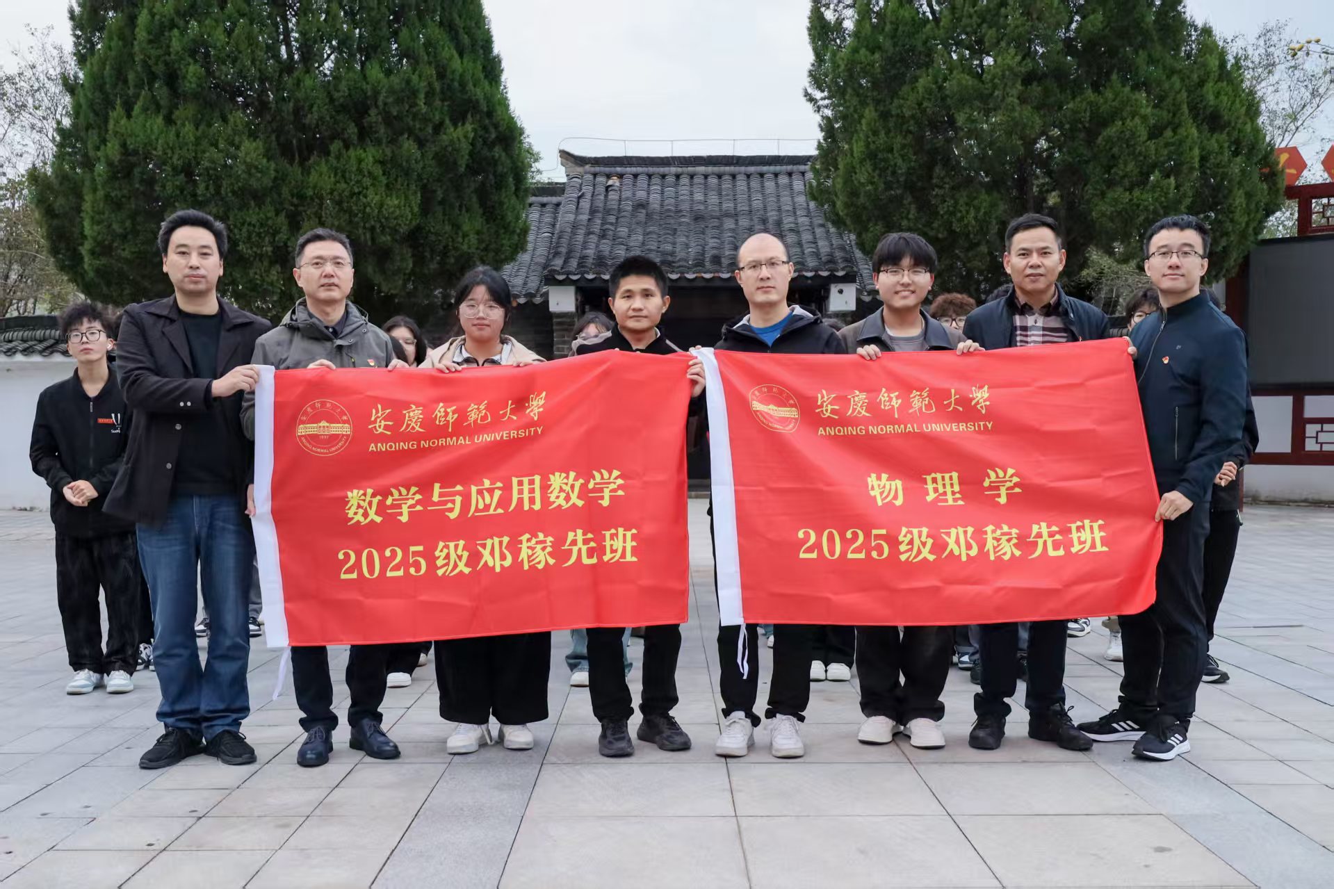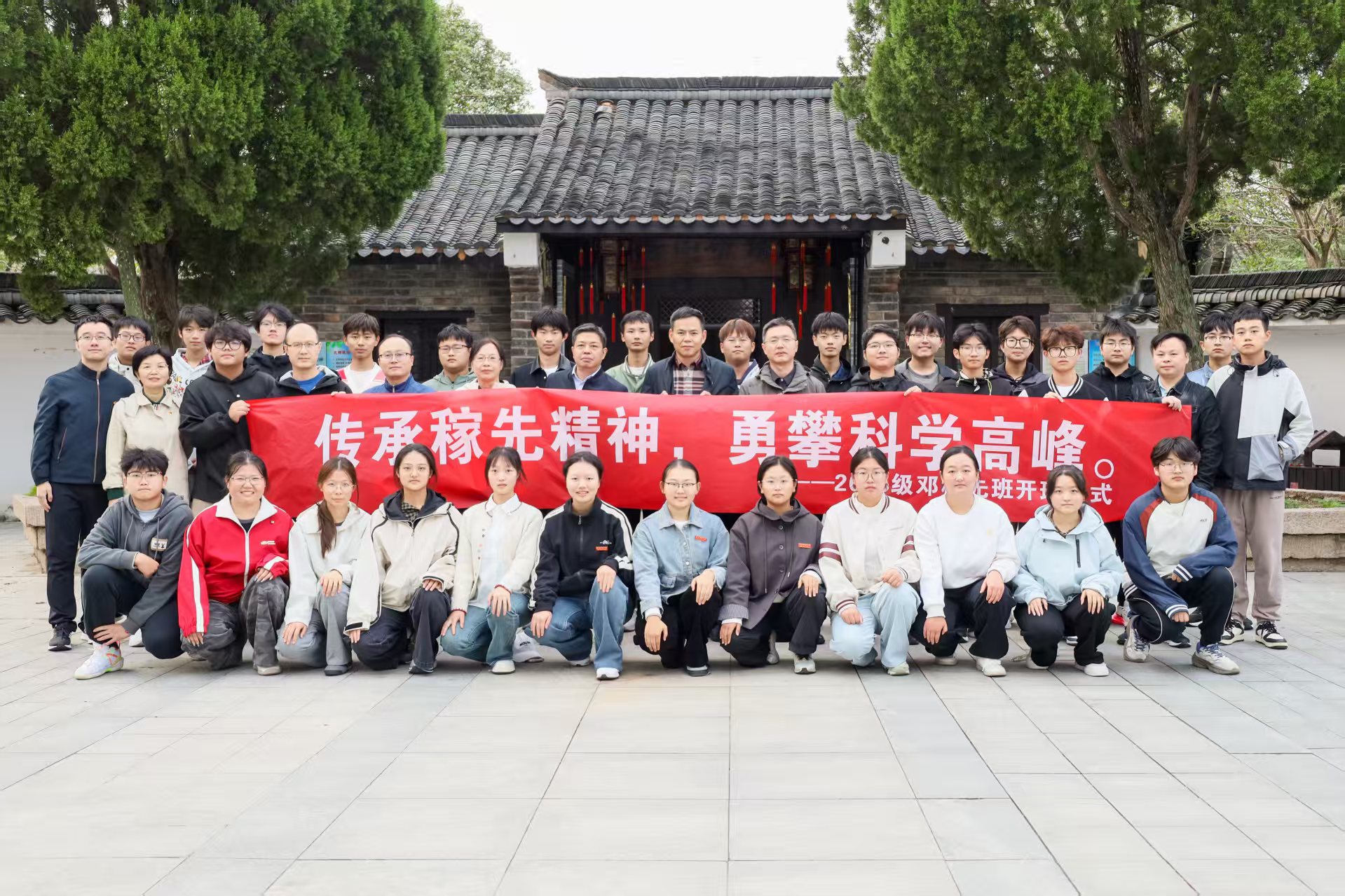 10月21日,数理学院在邓稼先故居举行2025级“邓稼先班”开班典礼。教务处处长潘锦云、数理学院党委书记陆健、院长张海、副院长易明芳、党委副书记彭芳珍,以及数学系主任、物理系主任、2025级“邓稼先班”辅导员、班主任和全体60名学生共同参加。典礼由彭芳珍主持。
