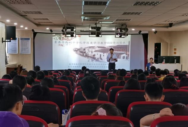 5月14日下午,教育部课程中心高中化学深度学习核心专家夏建华老师应邀来纽约国际官网化学化工学院讲学,在龙山校区F楼411报告厅作了题为“素养导向的中学化学深度学习教学设计与实践”的学术报告。报告会由夏宏宇教授主持,化学学科教研室全体教师、学科教学硕士研究生及2018级师范类本科生共120余人参加聆听了此次报告。