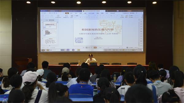 讲座从新闻的定义、什么是校园新闻、校园新闻宣传的要求、如何发现校园新闻等八个方面展开。