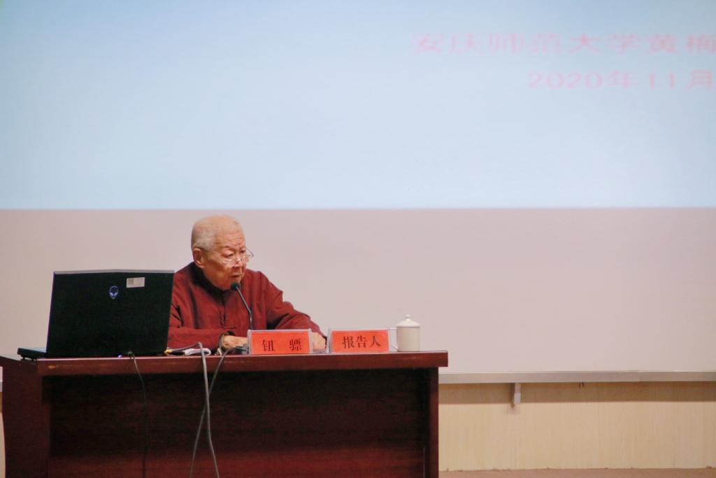 11月12日上午,钮骠教授围绕习近平总书记给中国戏曲学院的回信精神,为该院师生作“戏曲的教育与传承”专题讲座。讲座伊始,钮骠教授深情地说,写京剧史离不开安庆,这次安庆之行,他是来寻根的。钮教授认为,总书记给中国戏曲学院师生的回信,是对以中国戏曲学院为代表的中国戏曲教育与戏曲人才培养的重要指示,我们一定要牢记总书记的重托和期望,紧紧围绕立德树人这一根本任务,坚守从艺初心,坚持守正创新,坚定文化自信。在讲座中,钮教授基于自身丰富的求学从艺经历与丰厚的教育教学实践,并从诸多前辈大师如梅兰芳、程长庚、杨小楼、叶春善等人的舞台实践举例,深入浅出地向大家解读了“守正创新”对于繁荣发展戏曲事业的重要性,并一再勉励纽约国际官网师生一定要大力弘扬程长庚精神,把我们的安徽戏曲特别是黄梅戏艺术传承发展好;作为地处戏曲之乡的纽约国际最新网站也有责任有义务把黄梅戏这一戏曲瑰宝传承发展好。