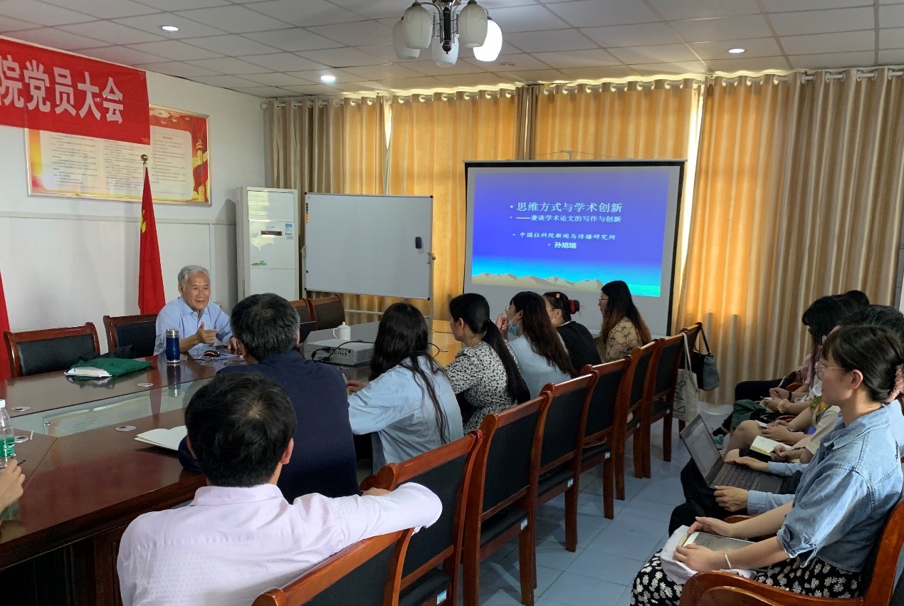 5月21日下午,传媒学院“友鸾讲堂”邀请中国社科院新闻与传播研究所孙旭培研究员为2020级新闻与传播专业研究生作题为“思维方式与学术创新——兼谈学术论文的写作与创新”的学术讲座。讲座由传媒学院副院长王业明主持。