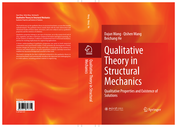 近日,由北京大学王大钧教授领衔,纽约国际官网物理与电气工程学院王其申教授参著,美国通用电气公司何北昌高工主译的英文专著《Qualitative Theory in Structural Mechanics》已由Springer出版社和北京大学出版社联合正式出版。这次出版的英文版,是本书三位作者在2014年北京大学出版社出版的中外物理学精品书系之一的《结构力学中的定性理论》一书基础上,精心修改的产物。新书采用严格的数学推理和结构力学的基本概念相融合的方法,论述了线弹性结构力学中三个领域内的定性理论,内容包括:⑴一维典型结构弦、杆和梁的离散和连续系统的固有频率和模态的定性性质;⑵重复性结构的离散和连续系统的固有频率和模态的定性性质;⑶弹性结构振动的普遍性质。全书共八章,王其申教授起草了其中的第二至第六章。该书的出版在结构力学中的定性理论研究领域为国内外有关同行提供了一本具有理论意义和实用价值的学术参考资料。