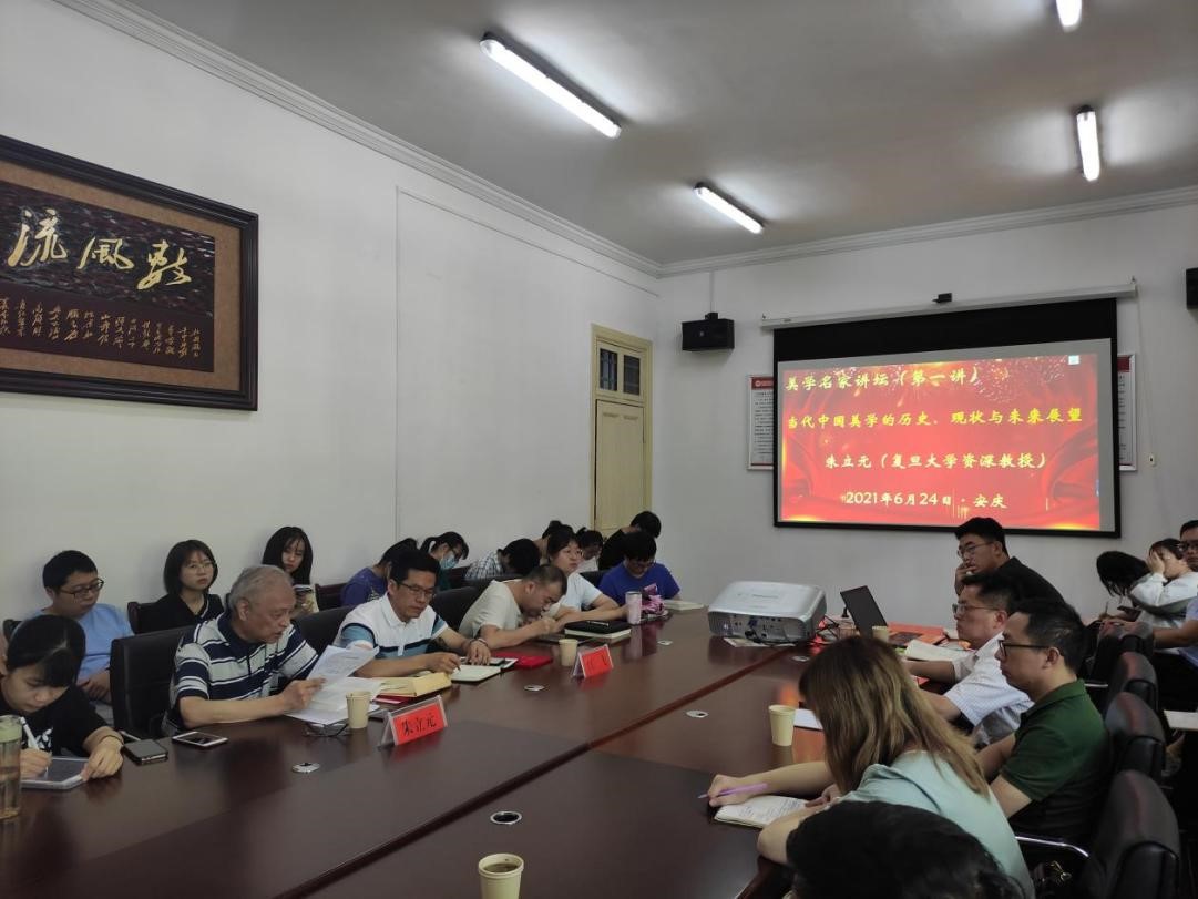 6月24日上午,应人文学院邀请,著名美学家、中华美学学会副会长、复旦大学资深教授、纽约国际最新网站美学与文艺评论研究中心顾问朱立元先生,在红楼会议室做了题为“中国当代美学的历史、现状和展望”的学术讲座。这是美学与文艺评论研究中心主办的“美学名家讲坛”第一讲,由中心主任江飞教授主持,60余名硕士生、本科生前来聆听,现场爆满。