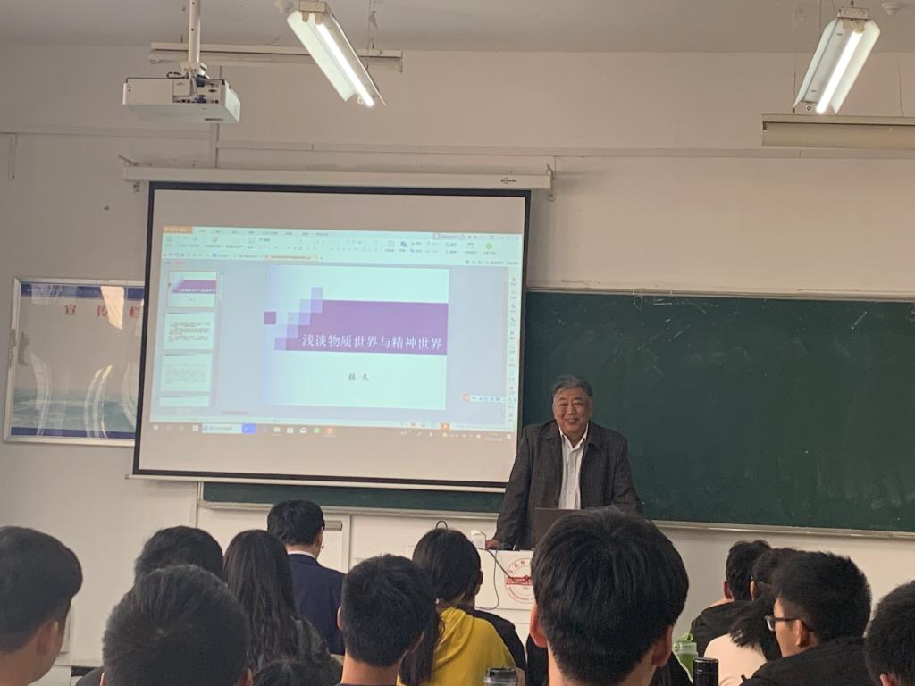 10月24日下午,青岛科技大学张文教授应邀在教学楼B410教室做了“浅谈物质世界与精神世界”学术报告,报告会由物电学院江贵生教授主持,物理专业18级学生和物理专业部分教师聆听了报告。