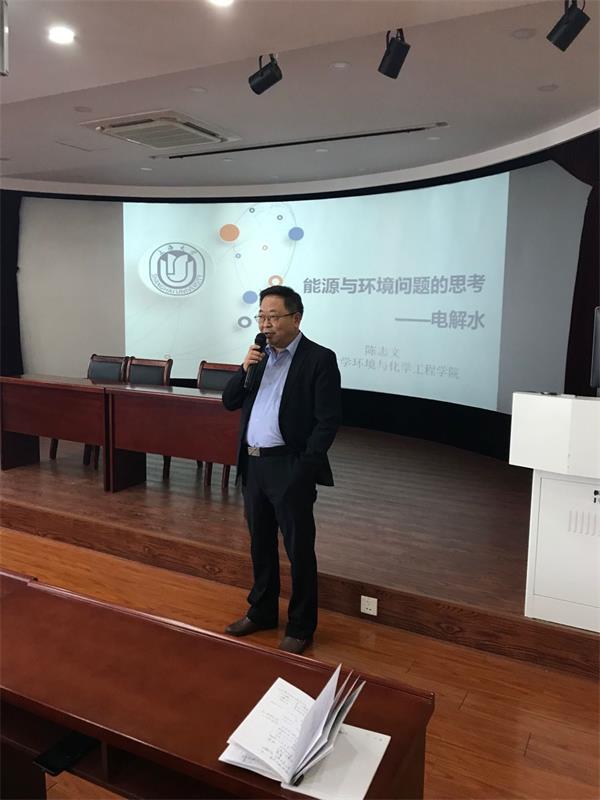 5月31日下午,上海大学环境与化学工程学院副院长、博士生导师陈志文教授应邀在龙山校区资环楼F411教室作了题为“能源与环境问题的思考—电解水”的学术报告。学院部分教师、研究生及本科生聆听了报告会,报告会由资源环境学院院长张元广教授主持。