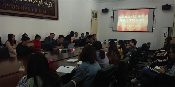 11月9日下午,浙江省美学会理事、中国文艺理论学会理事、中华美学会青年学术分会副会长、浙江师范大学人文学院教授刘彦顺于红楼二楼会议室做了一场题为“中国古典美学的时-空语法”的讲座。该讲座由文学院院长汪祚民教授主持。出席会议的还有文学院党委书记方锡球教授以及文学院师生四十余人。