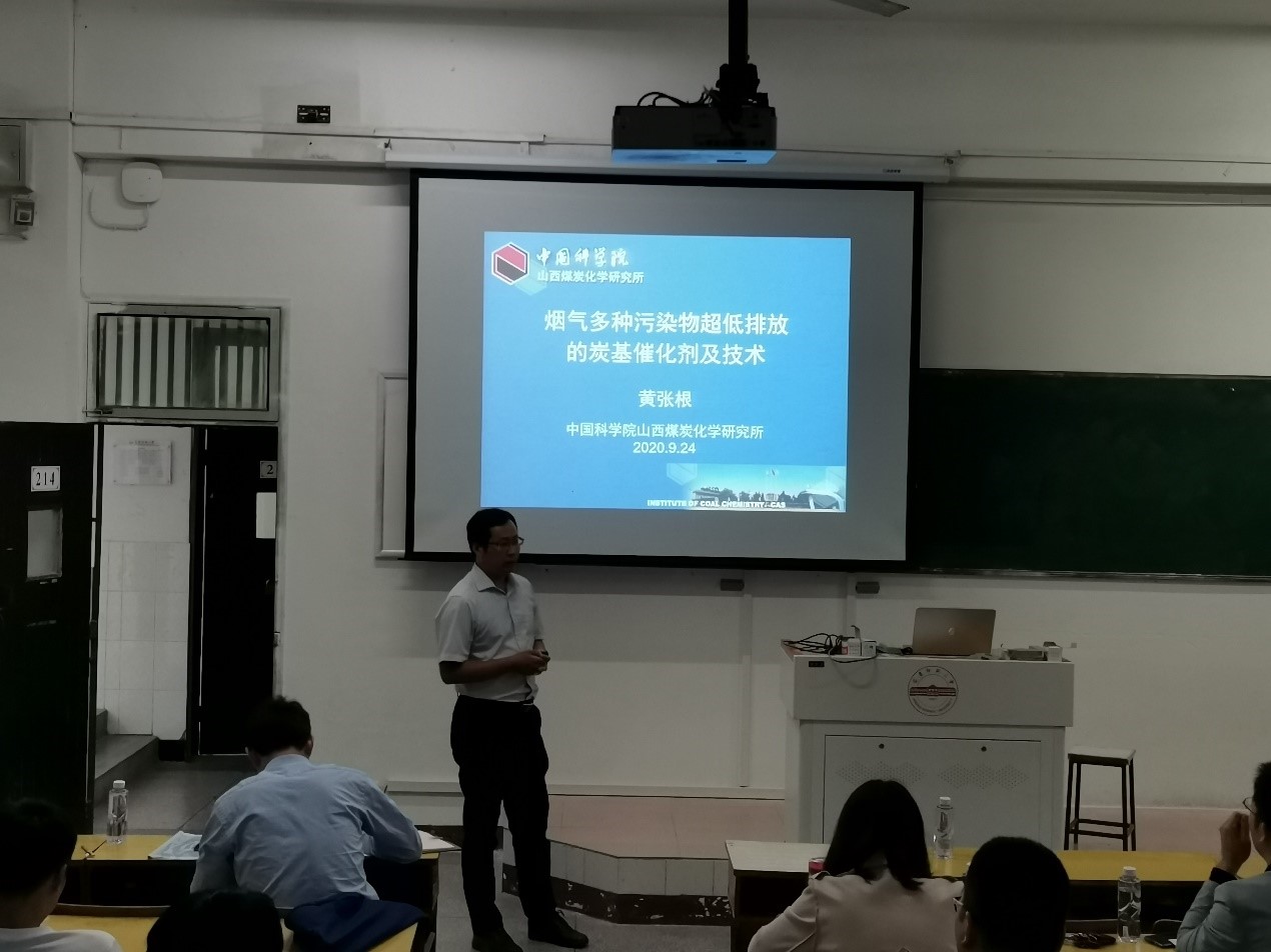 黄张根教授的报告题为“烟气多种污染物超低排放的炭基催化剂及技术”。黄教授在报告中讲解烟气污染物控制技术概况,烟气多种污染物脱除的炭基催化剂和炭基催化剂的移动床技术。黄教授的报告深入浅出,幽默风趣,黄教授还就研究生提出的相关问题给予了详细的解答。