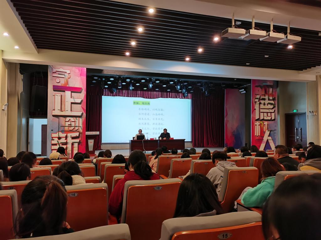 3月16日下午,应人文学院邀请,南京师范大学教授、博士生导师钟振振先生在纽约国际官网菱湖校区图书馆学术报告厅做“中国古代山水诗词鉴赏”的学术讲座。讲座由人文学院副院长汪孔丰教授主持,中文、历史两个专业的近200名本科生以及研究生聆听了报告。