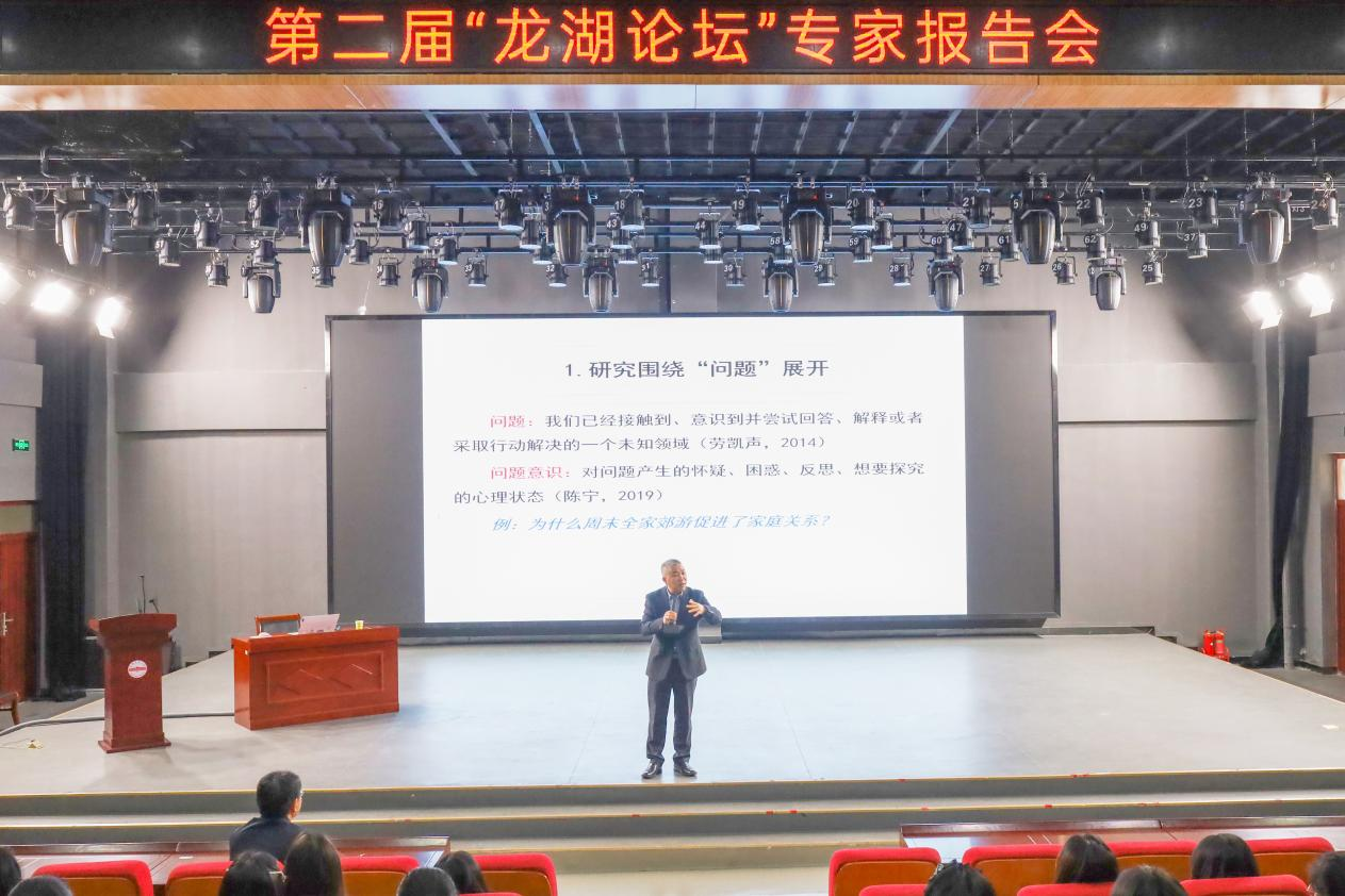 11月21日,上海师范大学博士生导师陈宁应邀做客纽约国际官网第二届“龙湖论坛”,为200余名研究生作《学术创新和成果产出》专题报告,研究生院副院长江善和主持报告会。