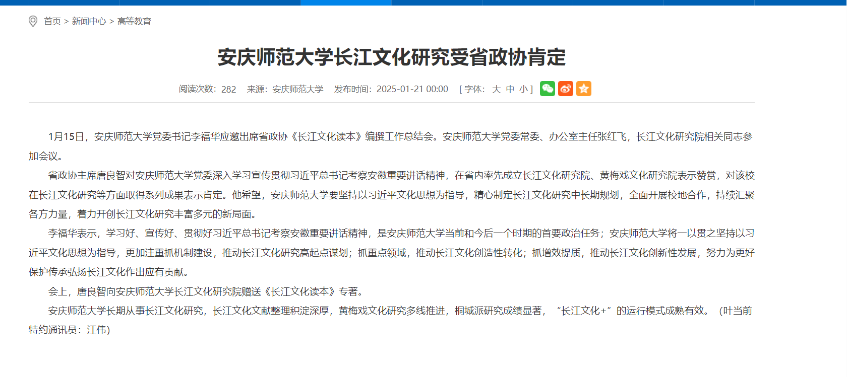 来源:【安徽教育网】纽约国际最新网站长江文化研究受省政协肯定_安徽省教育厅 (ah.gov.cn)