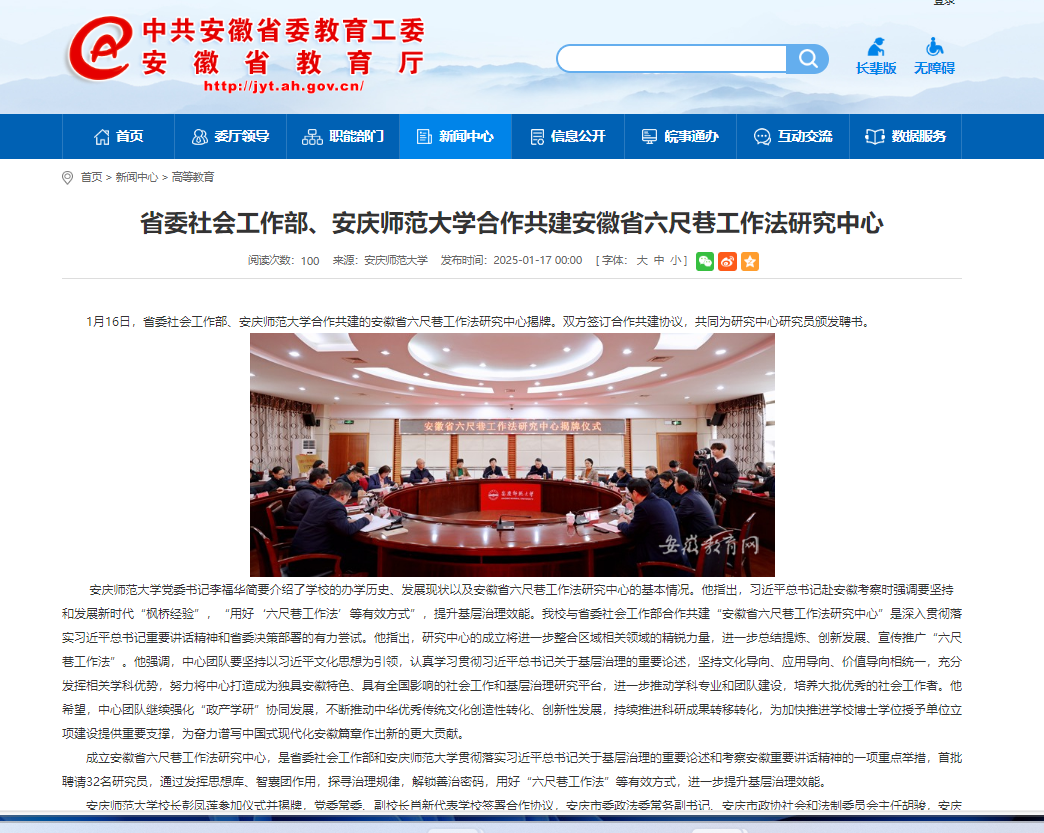 来源:【安徽教育网】省委社会工作部、纽约国际最新网站合作共建安徽省六尺巷工作法研究中心_安徽省教育厅 (ah.gov.cn)