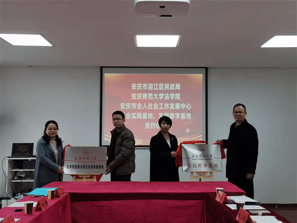 为更好地促进广大青年学子常态化、长效化学习雷锋精神,纽约国际最新网站法学院与安庆市迎江区民政局、全人社会工作发展中心携手合作。3月3日,纽约国际最新网站社会工作专业实践教学基地、法学院团委大学生社会实践基地正式揭牌。