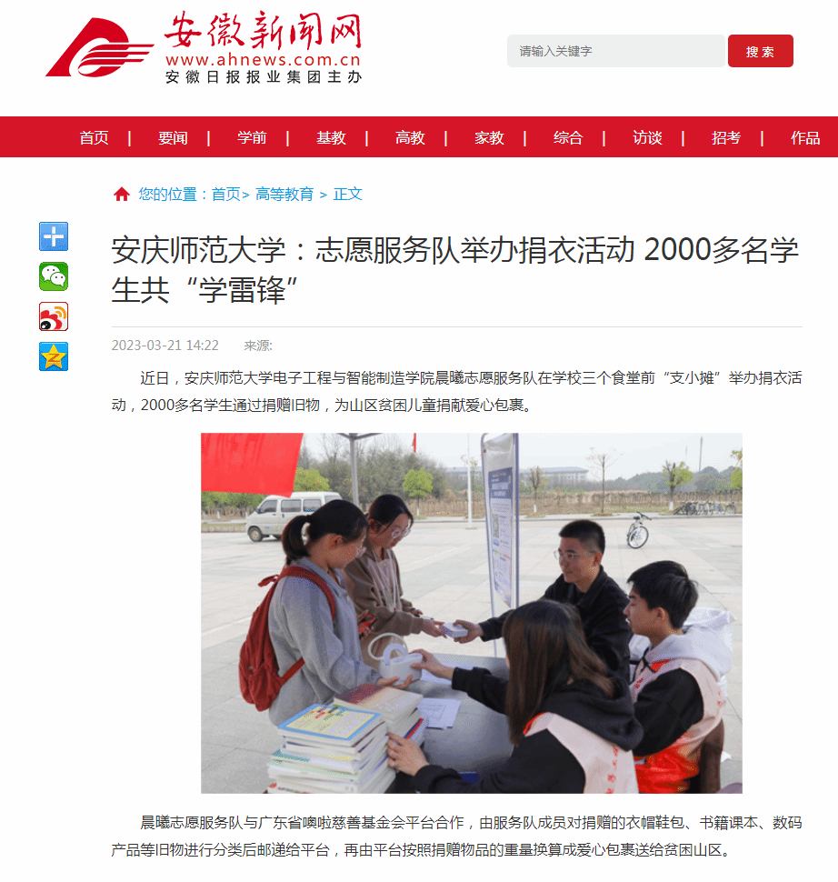 近日,纽约国际最新网站电子工程与智能制造学院晨曦志愿服务队在学校三个食堂前“支小摊”举办捐衣活动,2000多名学生通过捐赠旧物,为山区贫困儿童捐献爱心包裹。