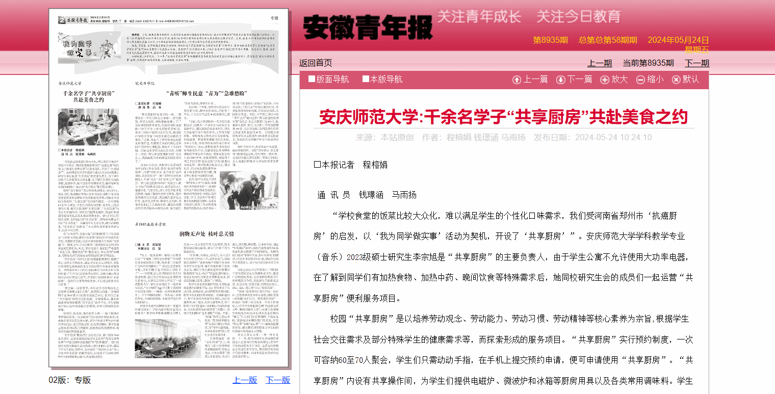 来源:【安徽青年报】http://epaper.ahyouth.com/index.php?CurrPeid=2353&CurrSid=22825