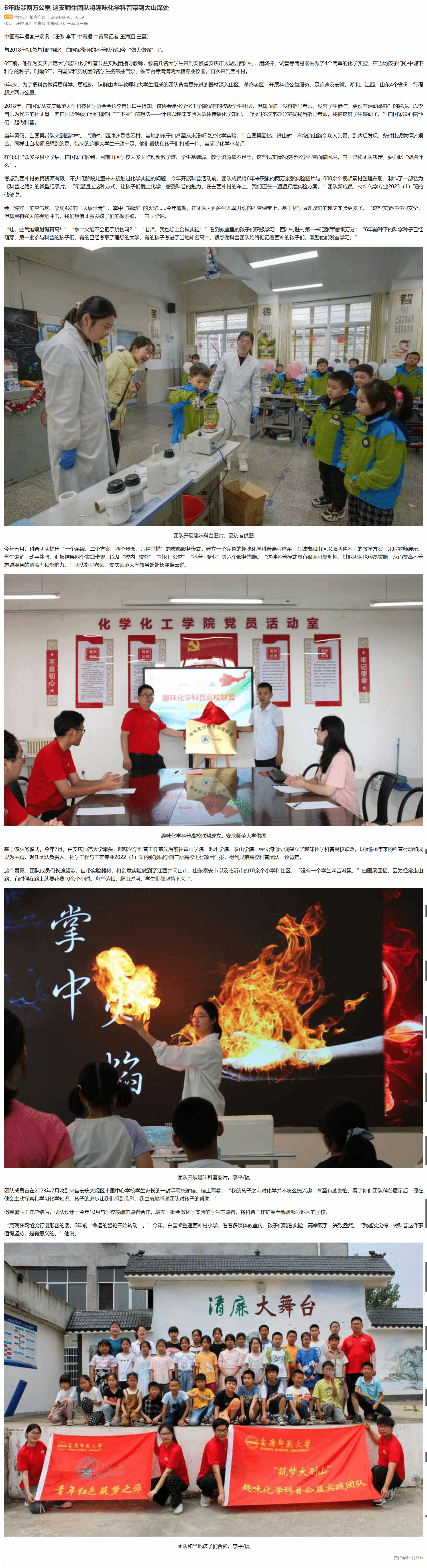 上一篇:中国青年报:“三下乡”团队六年跋涉两万公里 将趣味化学科普送到大山深处