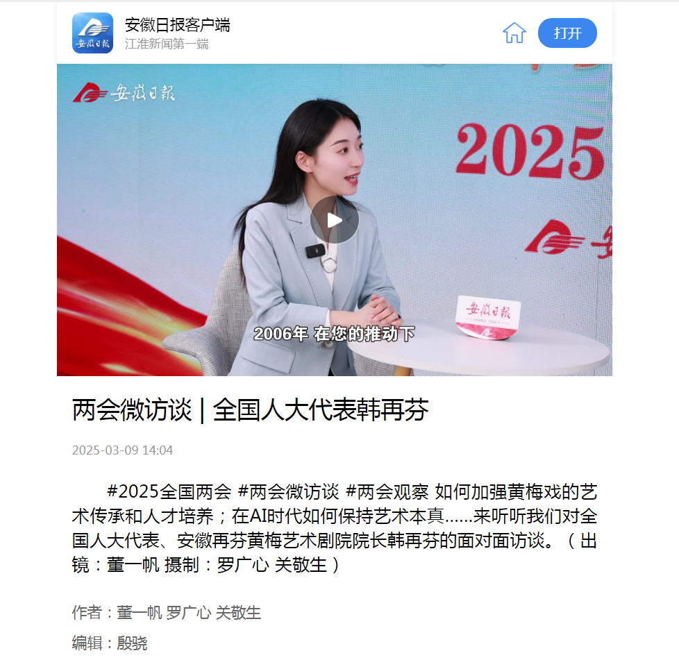 下一篇:安徽之声:全国人大代表韩再芬:黄梅戏传承需建立良好生态