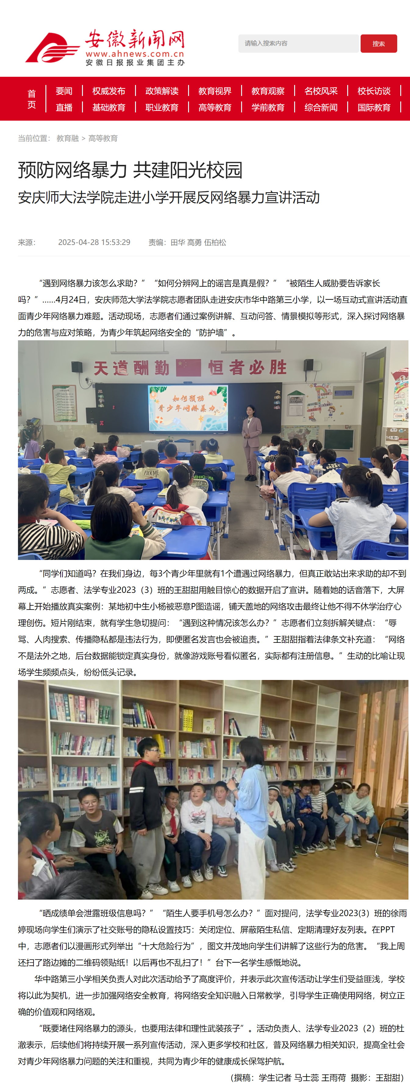 下一篇:中安教育网:安庆师大法学院走进小学开展反网络暴力宣讲活动