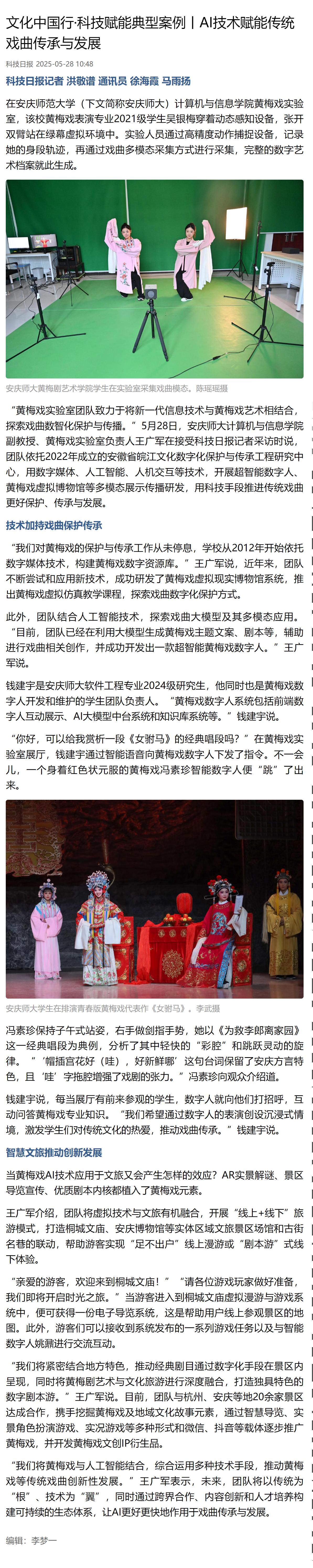 下一篇:安徽日报:文化中国行 | 用AI解锁黄梅戏“传承密码”