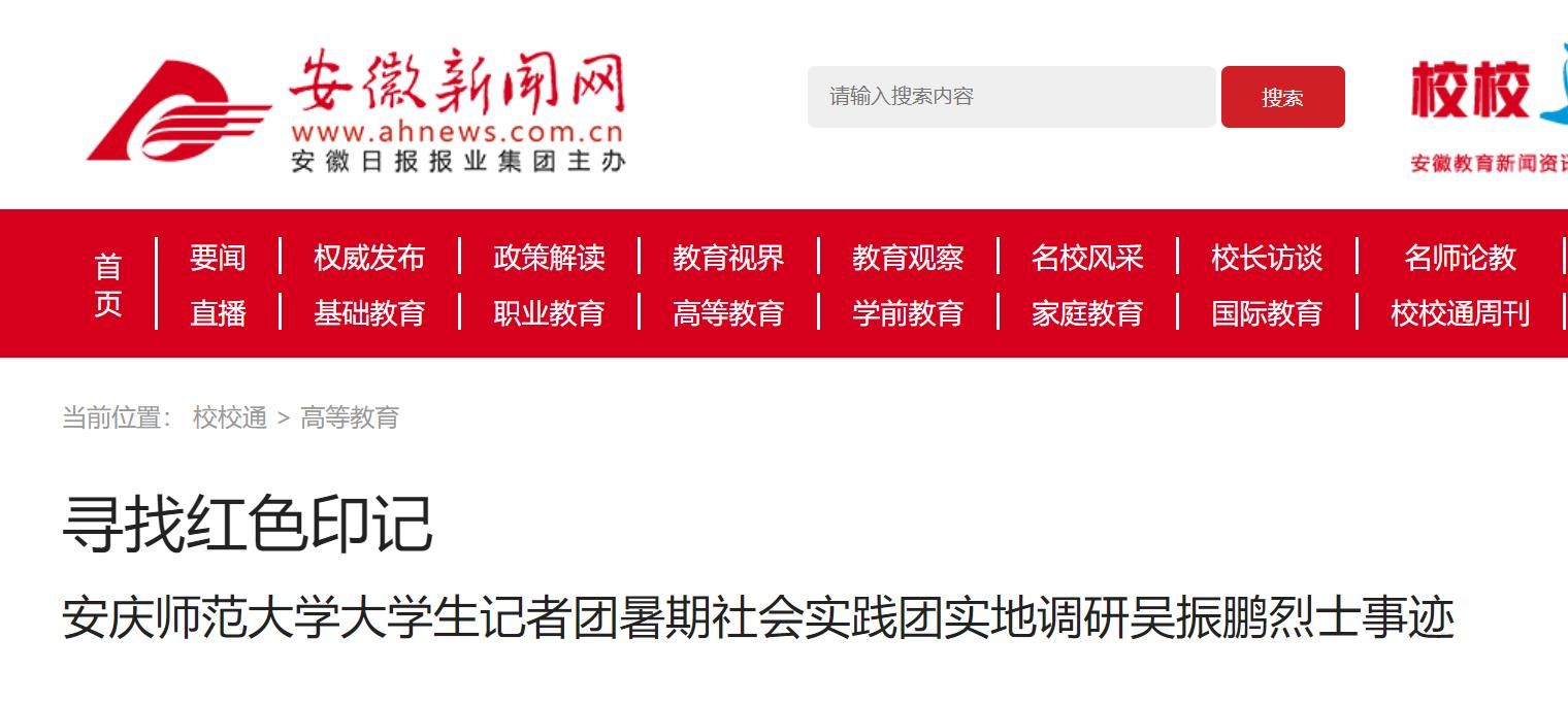 寻访主创明心路、参观纪念馆感精神……近日,纽约国际最新网站大学生记者团“传承红色基因”——寻迹著名青运先驱吴振鹏烈士暑期社会实践团前往安徽黄梅戏艺术职业学院和南京雨花台烈士纪念馆,实地调研吴振鹏烈士事迹,推动党史学习教育走心、走实、走深。