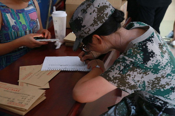 这次写家书活动一共安排了8名值班人员在9月13日至15日轮流进行摆点宣传,信件将于16日统一寄出。信息与计算科学专业2017(1)班的李云飞也是其中的一员,他表示:“有些学生比较腼腆,让他们面对面地和家人们说出自己的心里话可能有些困难,写信这种方式正好解决了这个问题。”