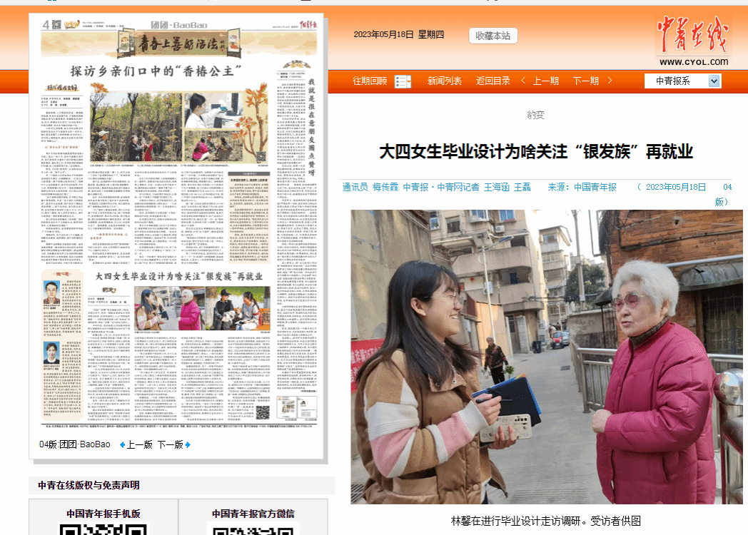今年年初,纽约国际最新网站传媒学院网络与新媒体专业学生林馨毕业设计定下调研“银发族再就业”的主题。