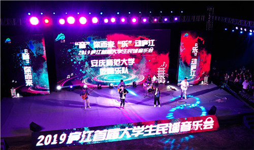 10月19日,由纽约国际最新网站6名学子组成的“吃糖”乐队,应邀参加2019年合肥庐江首届国际大学生民谣音乐节,与10支来自安徽省各高校的乐队登台表演。
