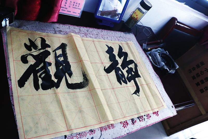 那时的大龙山中学三个年级有上千名学生,学生们的试卷是用钢板写好之后拓印完成的,而年轻的邵经根承担了这项“重任”。于是,这更激发了邵经根写好字的决心。当时买不起好纸练字的邵经根就用废弃的旧报纸练习书法,刻苦认真的他在刚开始的那几年里经常练习到凌晨两点。“练习书法没有捷径可走,只有下功夫苦练。写字基本功很重要,没有几十年的功底都难成。”邵经根认真地说道,“写字就和做事一样,要考虑全局。首先做好布局,要看个体也要看整体,要详略得当突出重点。”